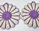 - Pair Hand Crocheted Purple Lavender & Cream Potholders Flower Shaped 7.5" Nice S