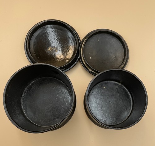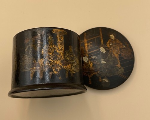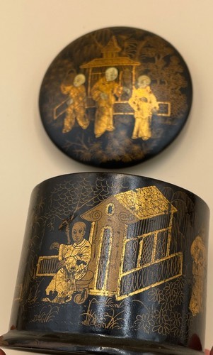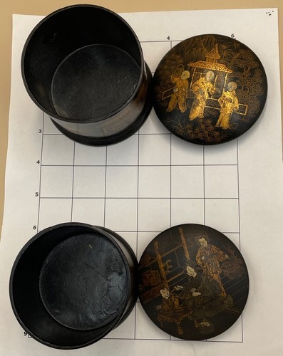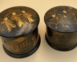 - Pair Of Antique English chinoiserie Papier Mache Lidded Dresser Boxes
