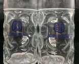 Pair Of Clear Lowenbrau Beer Large 8" Glass Stein Mug 1L Dimpled Red Tongue Lion