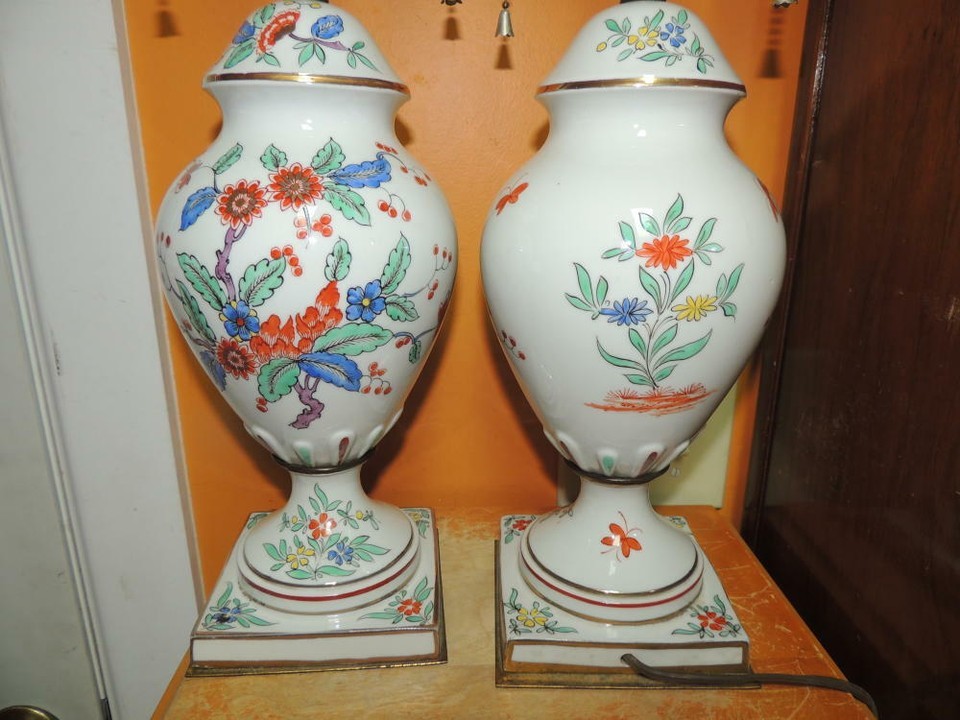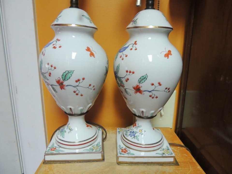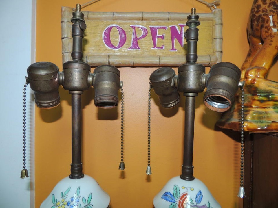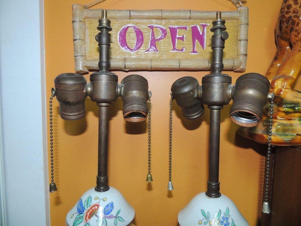 - Pair Table Lamps 21" French style Porcelain 19th century double socket Antique