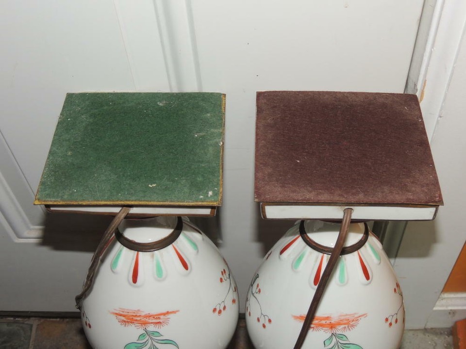 Pair Table Lamps 21" French style Porcelain 19th century double socket Antique