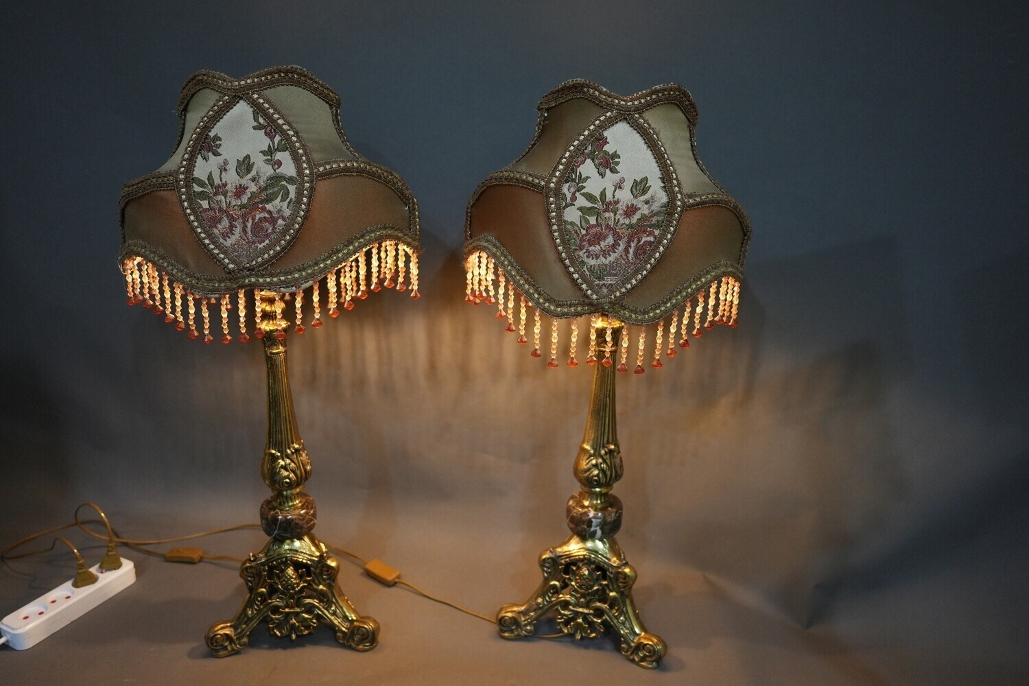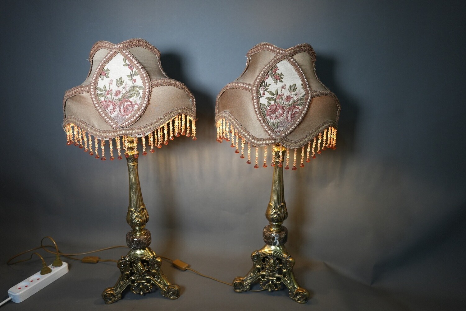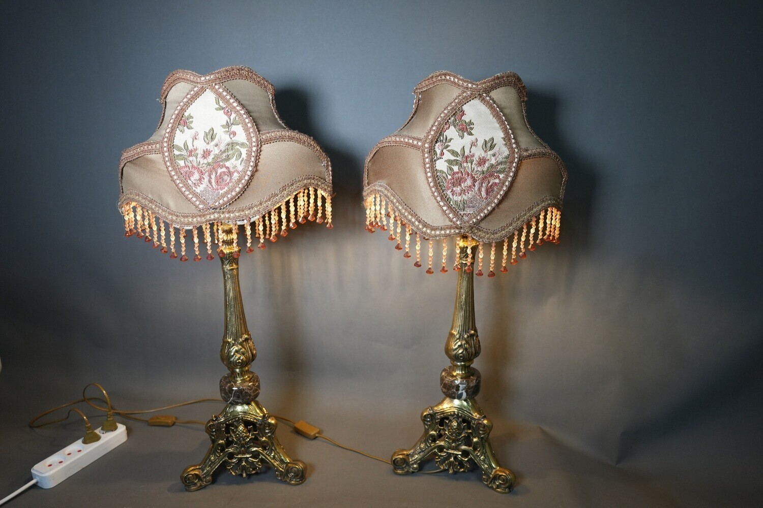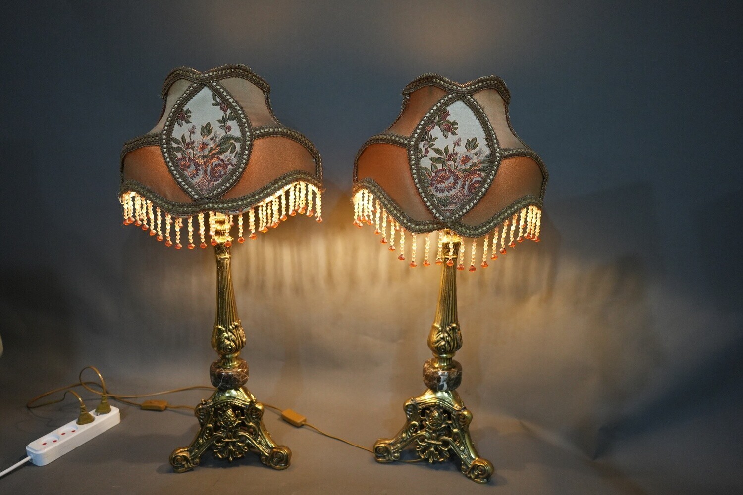 - Pair of Gilt Brass French Style Electric table Lamps handmade shades Egyptian