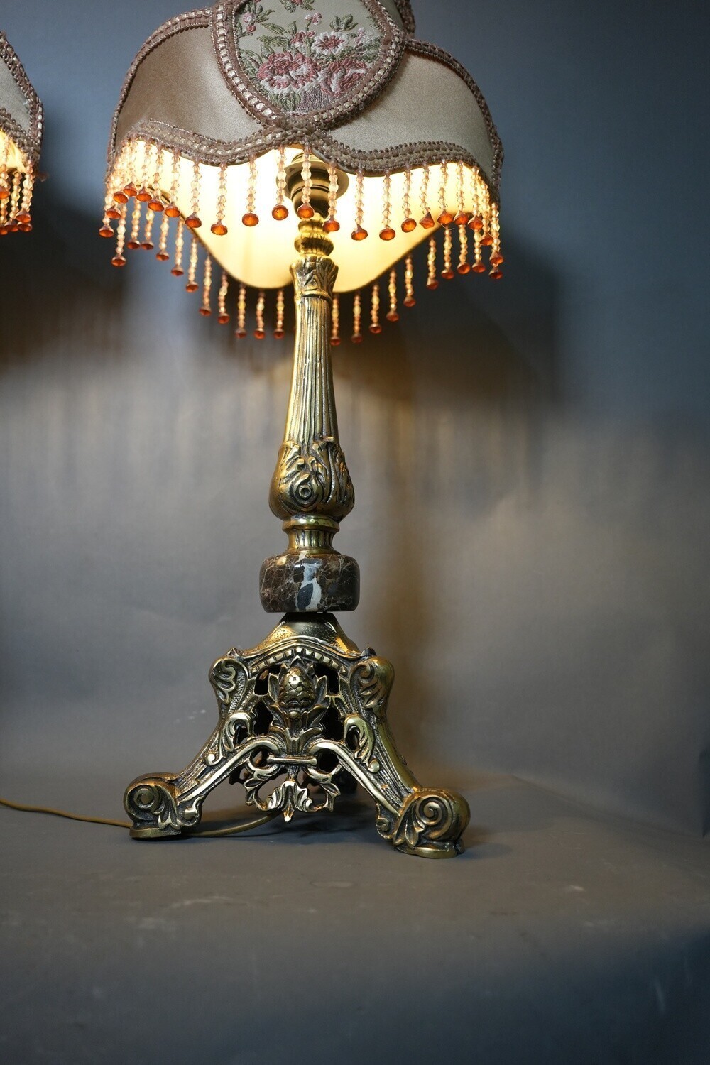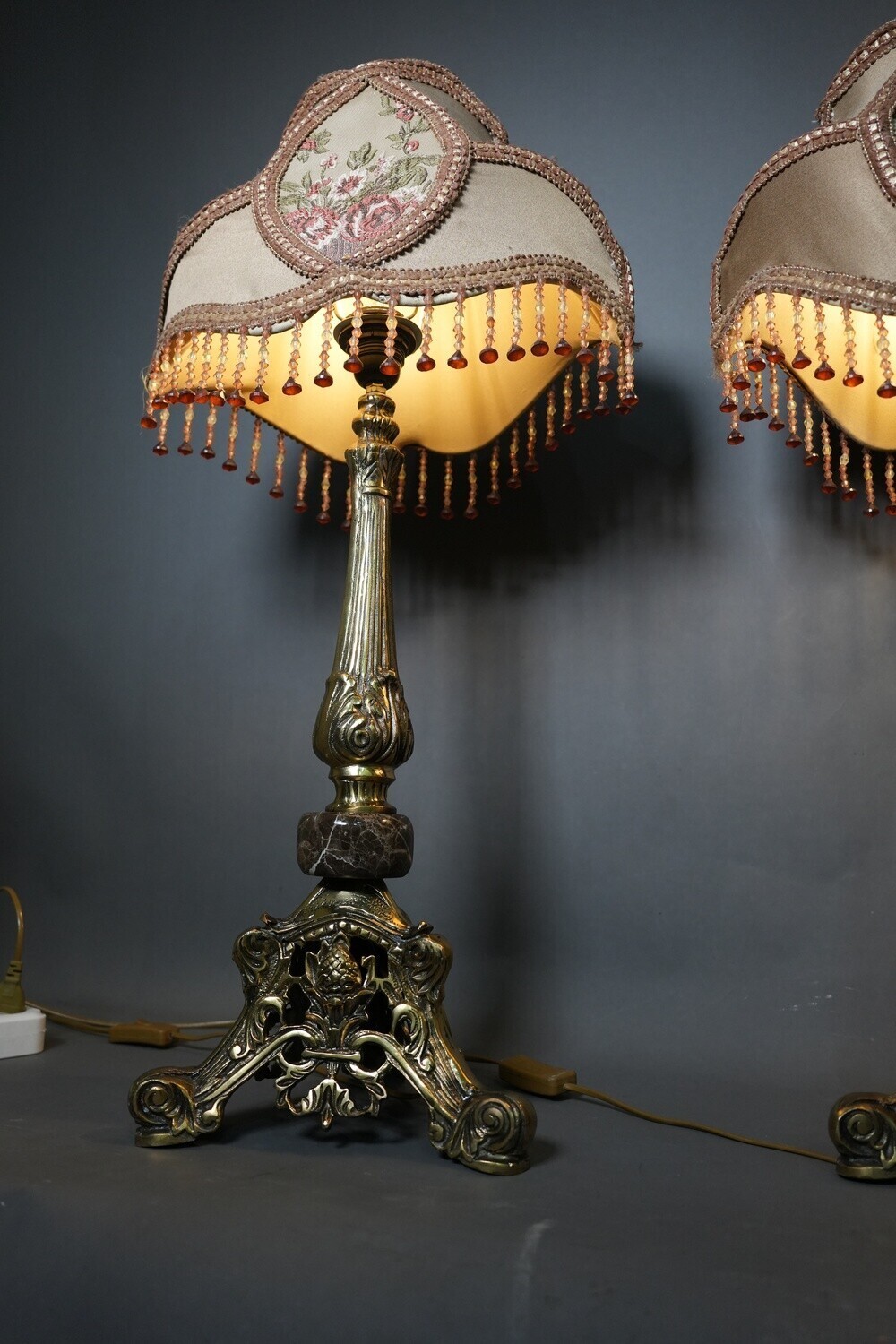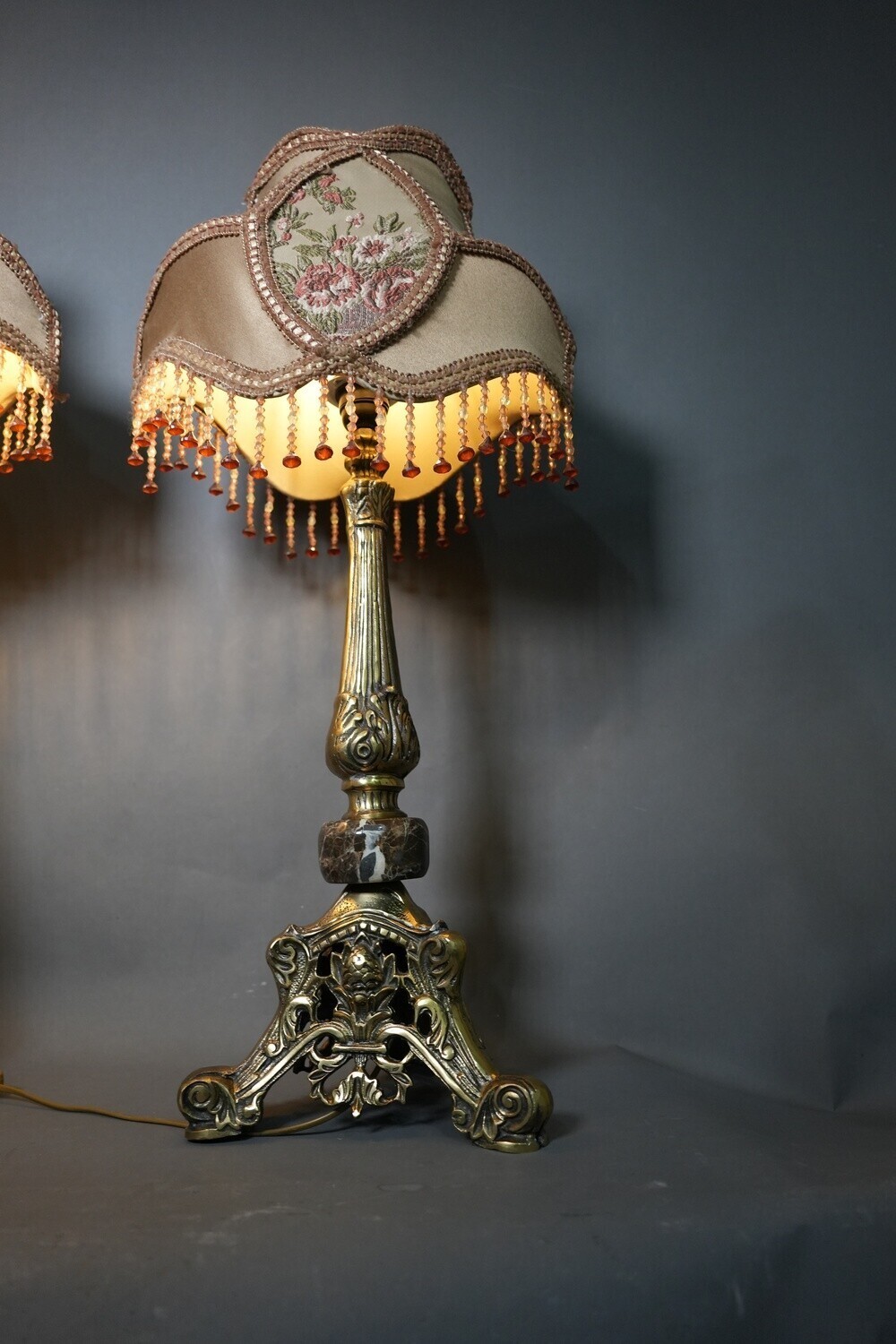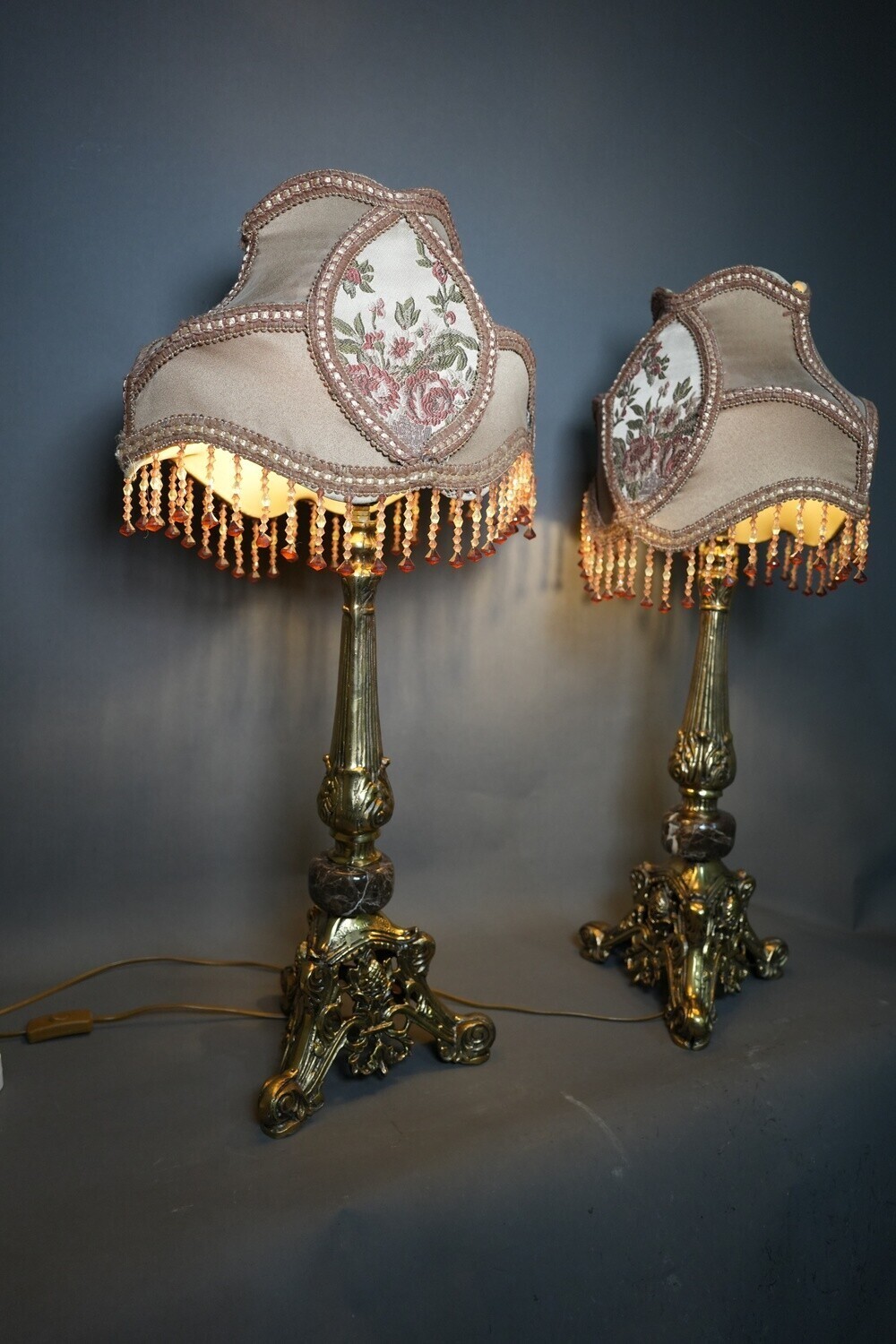 - Pair of Gilt Brass French Style Electric table Lamps handmade shades Egyptian