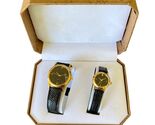 - Pair of Mens and Womens Watches Gold Tone Leather Bands New In Box 2005