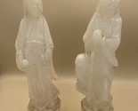 Pair of Vintage Hand Carved Rose Quartz Figurines 12" Chinoiserie