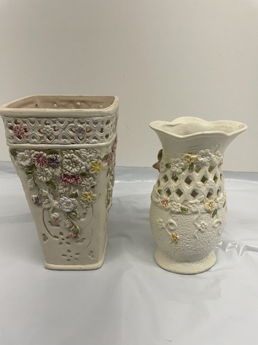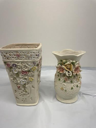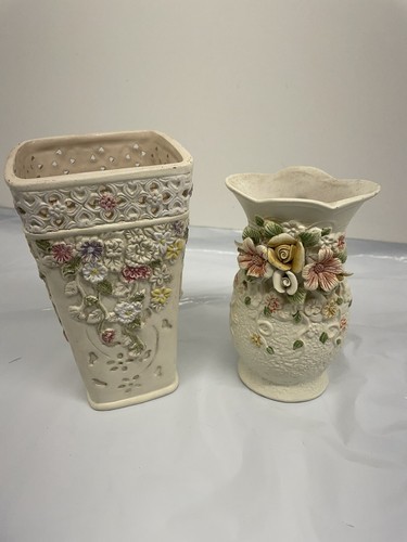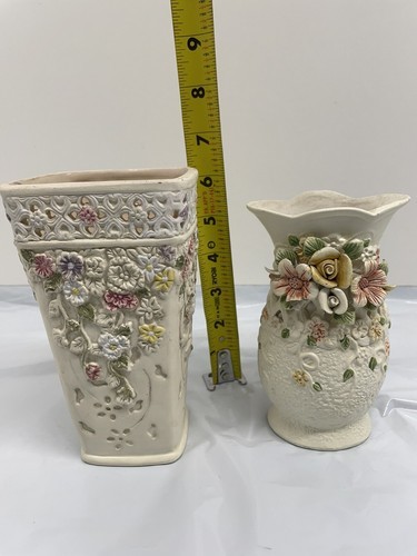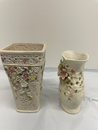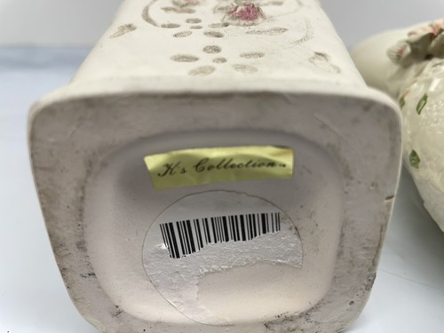 - Pair of Vintage K's Collection Cream Pastel Flowered Vase 6.5 inch