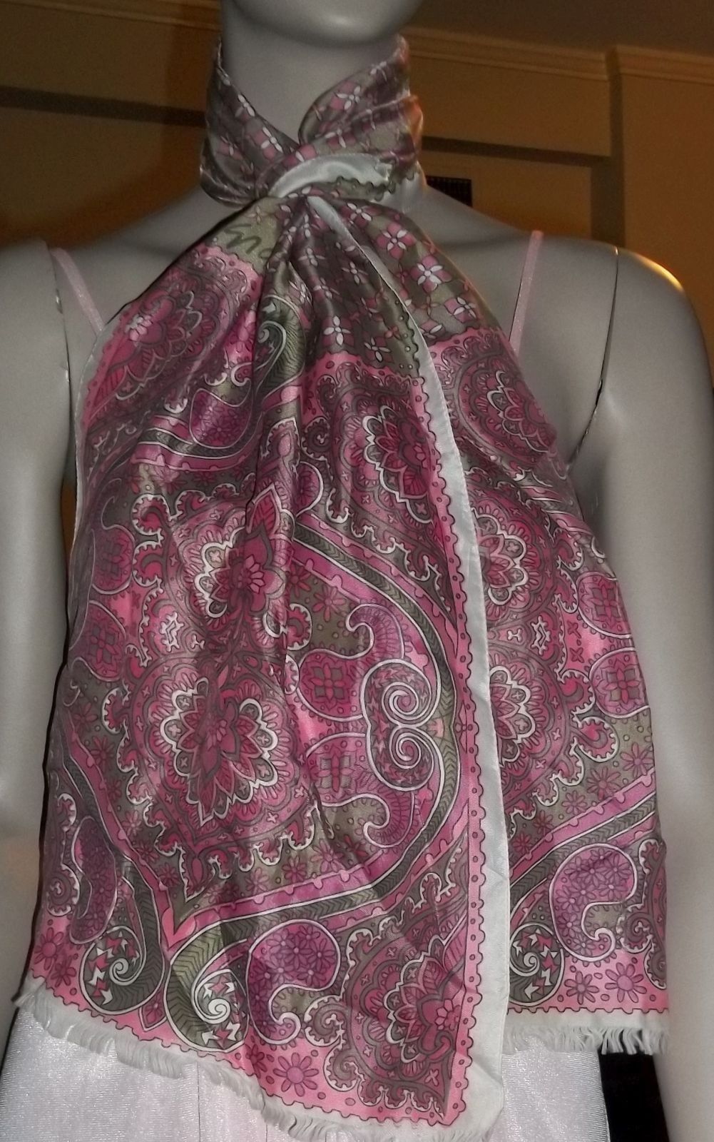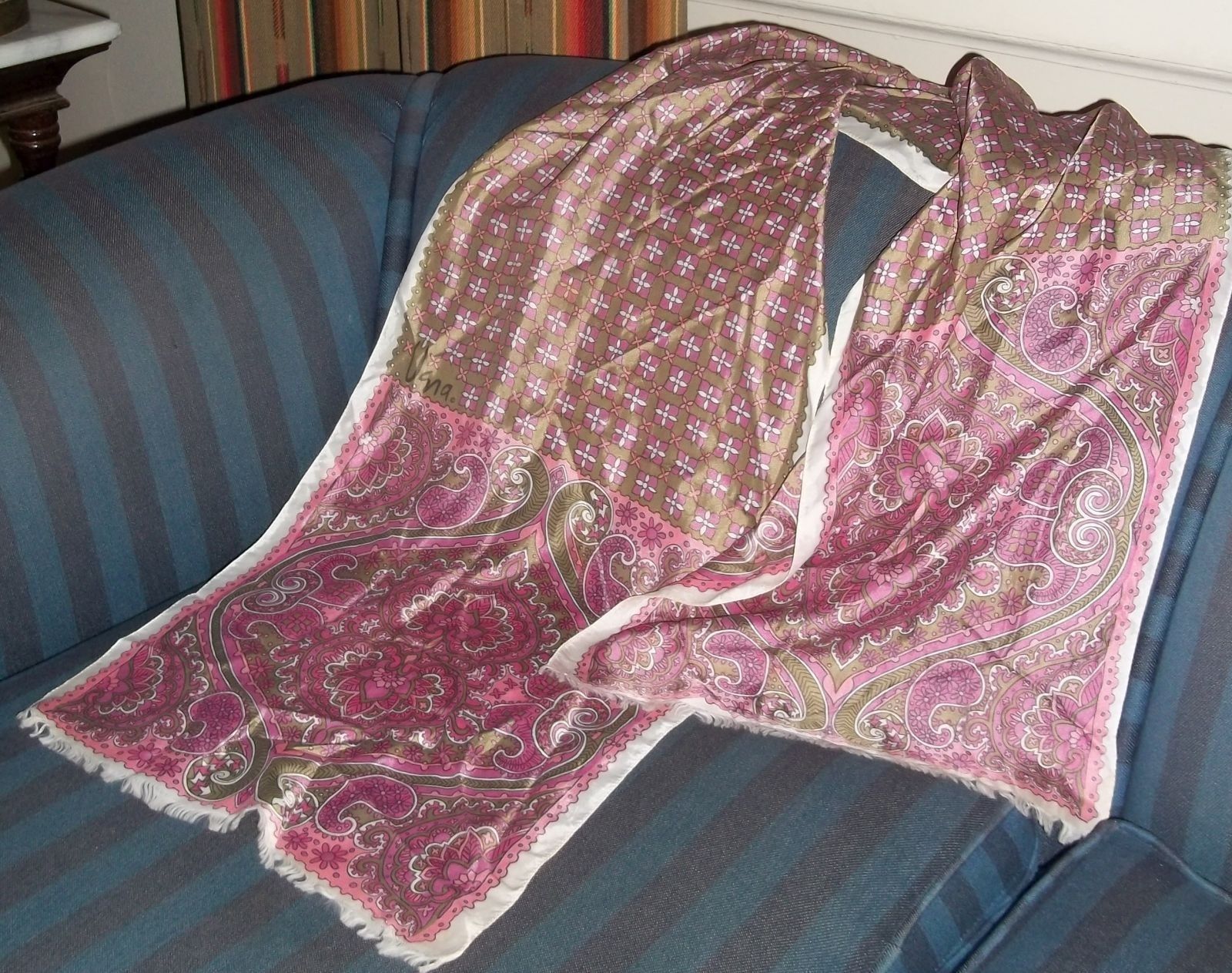 Paisley Vera Neumann Scarf Sash 70 Inch Pink Mauve Beige