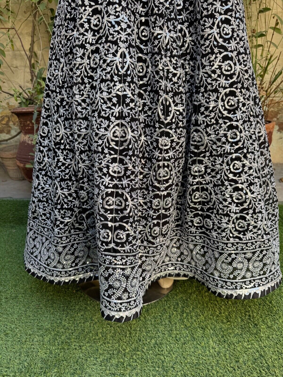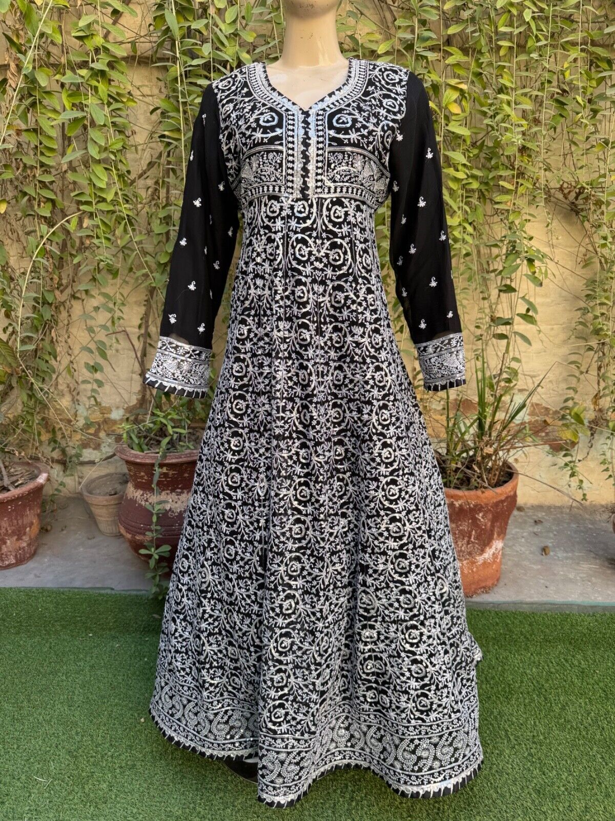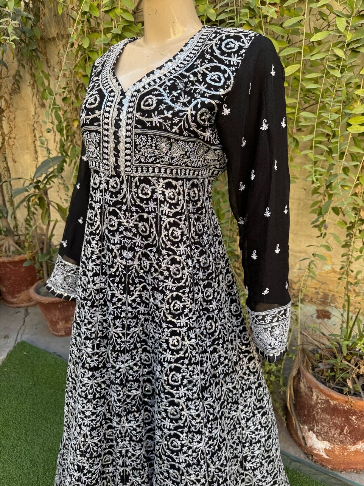 ? Black Chiffon long Maxi style shirt with full thread embroidery Sequins work, back is full embroidered.