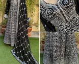 Pakistani Black Long Maxi Style Embroidered Sequins Chiffon Dress,L
