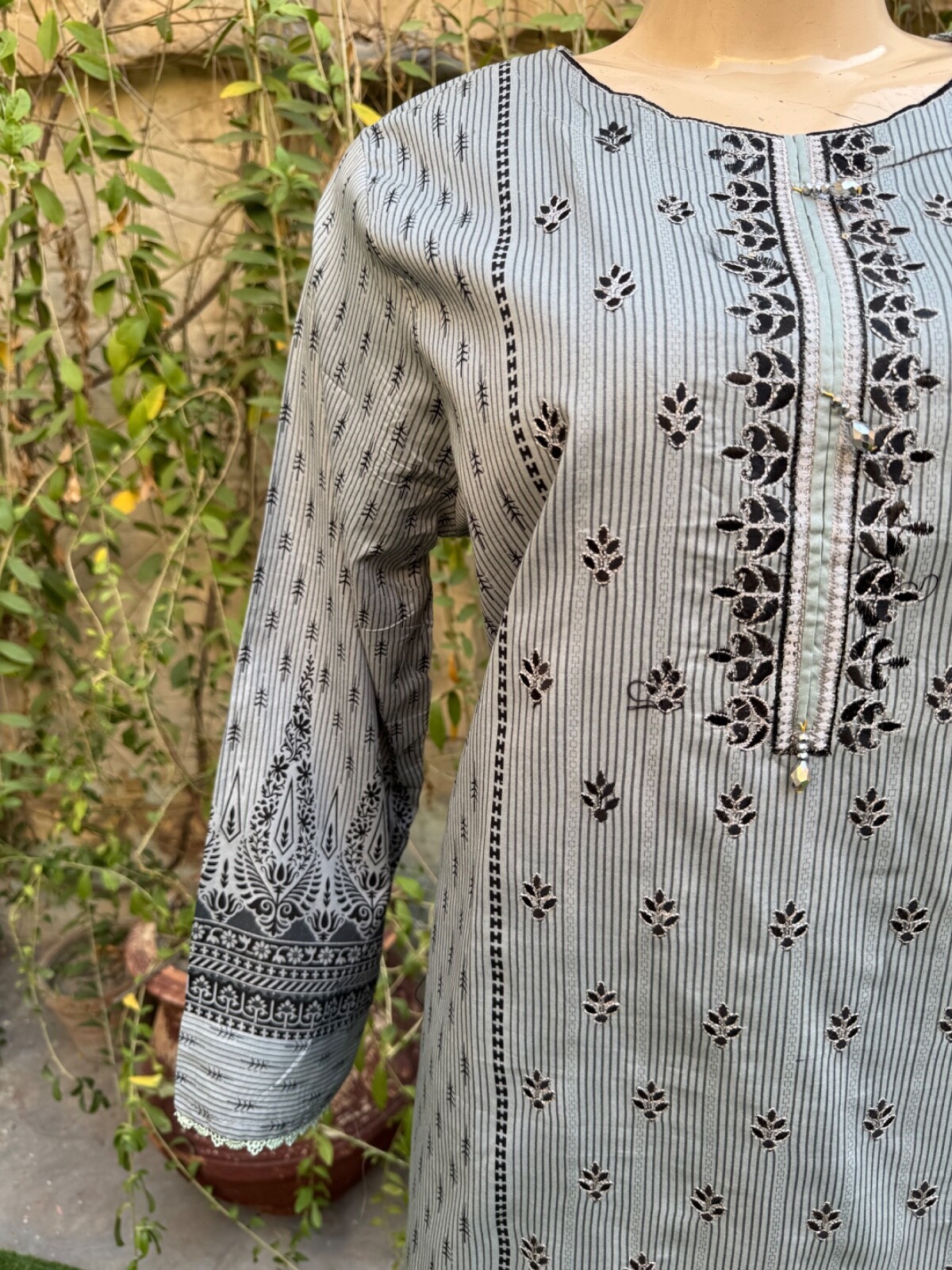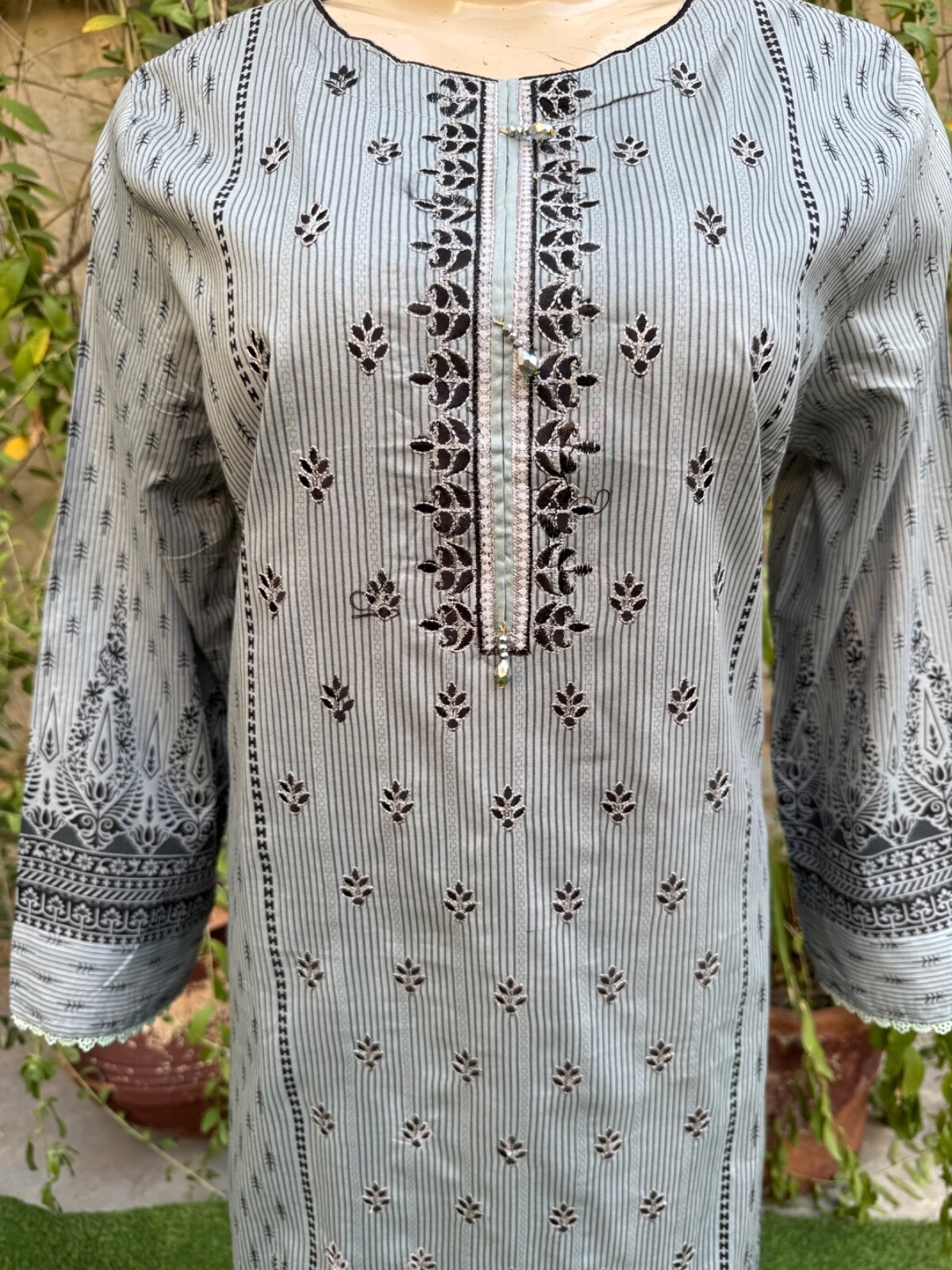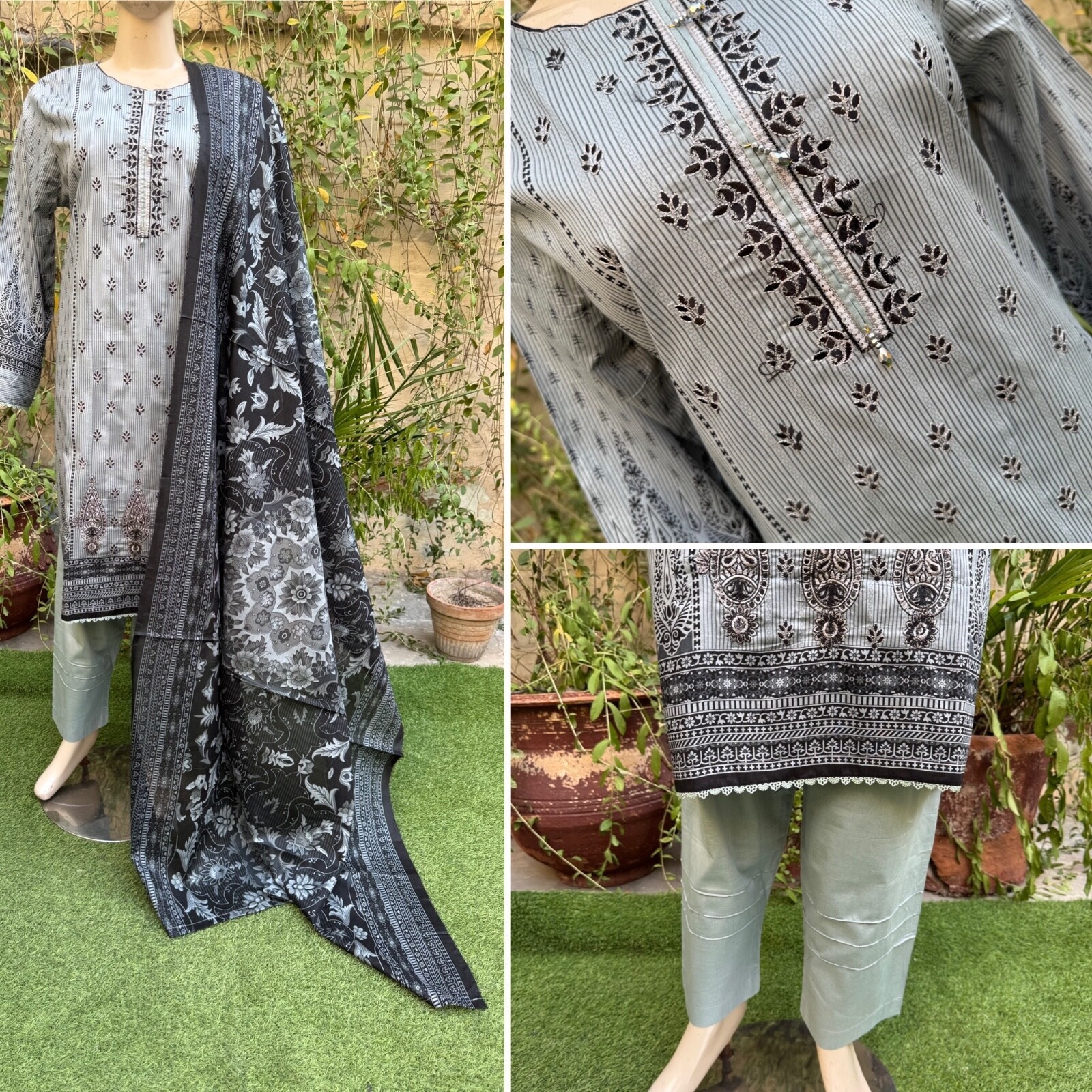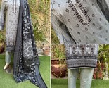 Pakistani Gray Printed Straight Shirt 3-PCS Lawn Suit w/ Threadwork ,XL#2