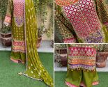 Pakistani Green Straight Style Embroidered Sequins Chiffon Sharara Dress,L