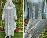 - Pakistani Ice Blue silk long Gown shirt Style Embroidered Sequins Dress,XL