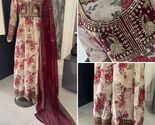 Pakistani Light Beige Long Maxi Style Embroidered Sequins work Dress,M