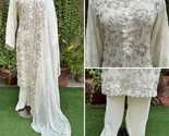 - Pakistani Off White 3Pcs Fancy Chiffon Dress with thread embroidery ,XL