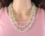 ?Style/Features: High quality dense beads in a perfectly colored vintage faux pearl beaded multi-strand necklace. The sophisticated layered design draped beautifully at the collarbone looks seamless with the hidden clasp. Both strands are comprised of an elegant mix of high quality lucite composite beads in opalescent rounds, pale mint faux pearls and slightly opaque unique clear crackle all strung tightly on silk. The soft luminous glow of the moonglow style lucite gives the piece a stunning, ethereal quality. Combined with the opal beads it exudes a very expensive look. Vintage like this was designed to appear to be very expensive fine jewelry while being affordable. This piece offers a refreshing pastel green pop of color, perfect for spring summer styling.