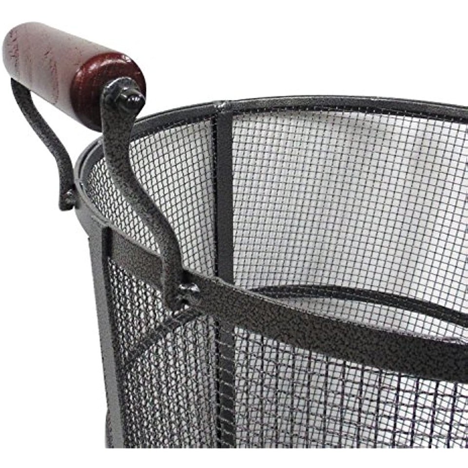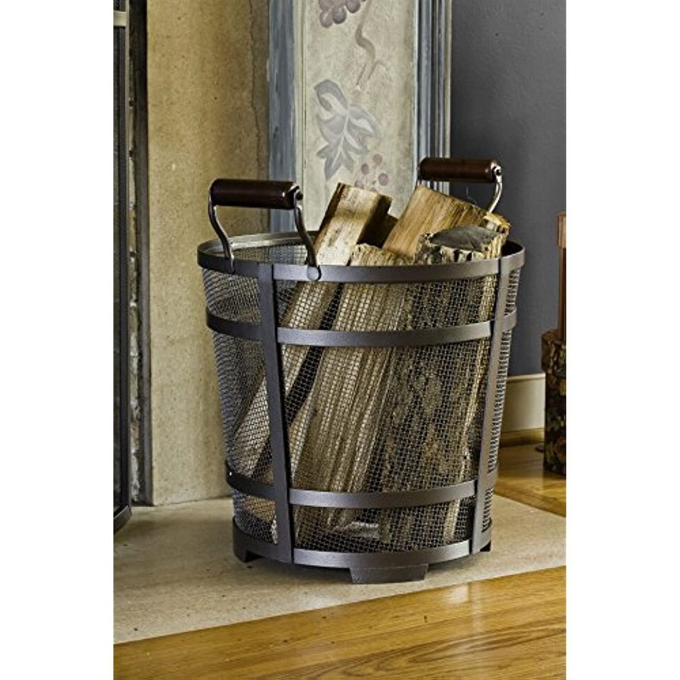Panacea Prairie Antique Iron Round Basket Log Bin keeps your firewood neat and within easy reach. This bin adds a refreshing look to your hearth, with its round basket shape and metal mesh sides. The basket holds a significant amount of logs, and its open top keeps them easily accessible. 100% solid metal frame and base add durability to the piece, while 3 metal feet keep the bottom off of the ground. 2 sturdy wooden handles allow you to move the bin. House your logs in a modern container with this contemporary log bin. Antique Iron With metal mesh sides 100% solid steel frame base with 3 metal feet that keep the bottom off the ground 2 wooden handles allow easy movement Dimension: 22" (H) x 19" (L) x 17" (W).
