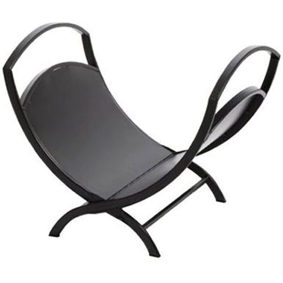 Black, fireplace log Bin, powder coated Steel, keeps wood neatly organized near the hearth, compact foldable for easy storage, designed to match #15951 screen
