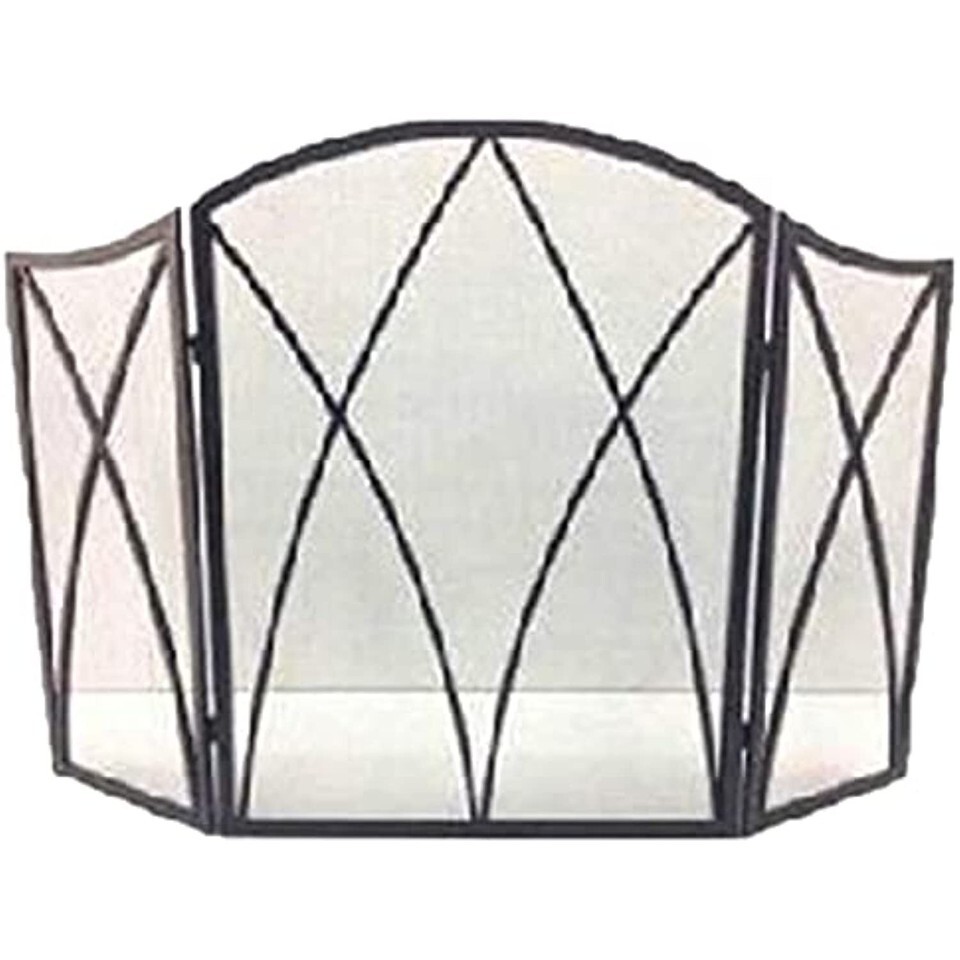 3 panel, eggshell black, Gothic style fireplace screen, 32"H x 48"W, 100percent powder coated steel construction.
