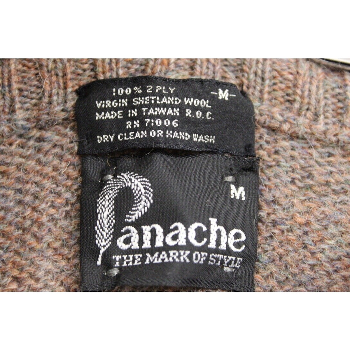 Panache USA imported quality menswear staples during the 1970s, often sourcing Shetland wool knits from Taiwan as American labels expanded globally. This sweater reflects the rugged yet refined appeal of Shetland wool, prized for warmth, durability, and texture.