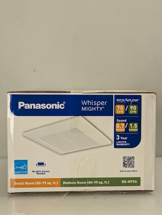 - Panasonic RG-M79A Whisper Mighty Pick-A-Flow 70/90 CFM Bathroom Exhaust Fan
