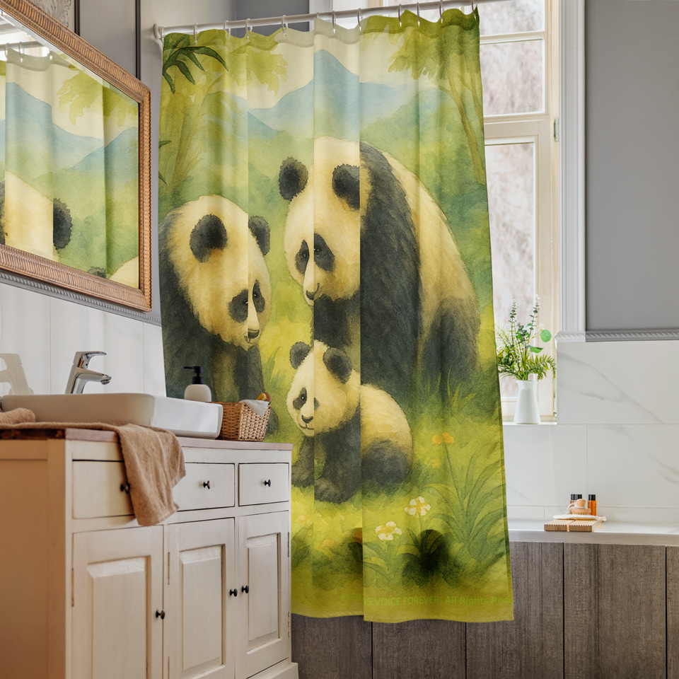 - Panda Bear Family Shower Curtain – Wildlife Nature Bathroom Decor 71x74