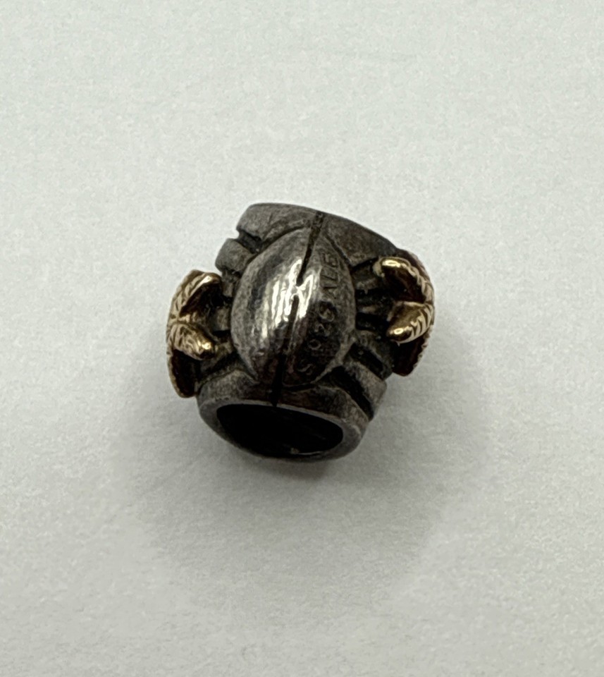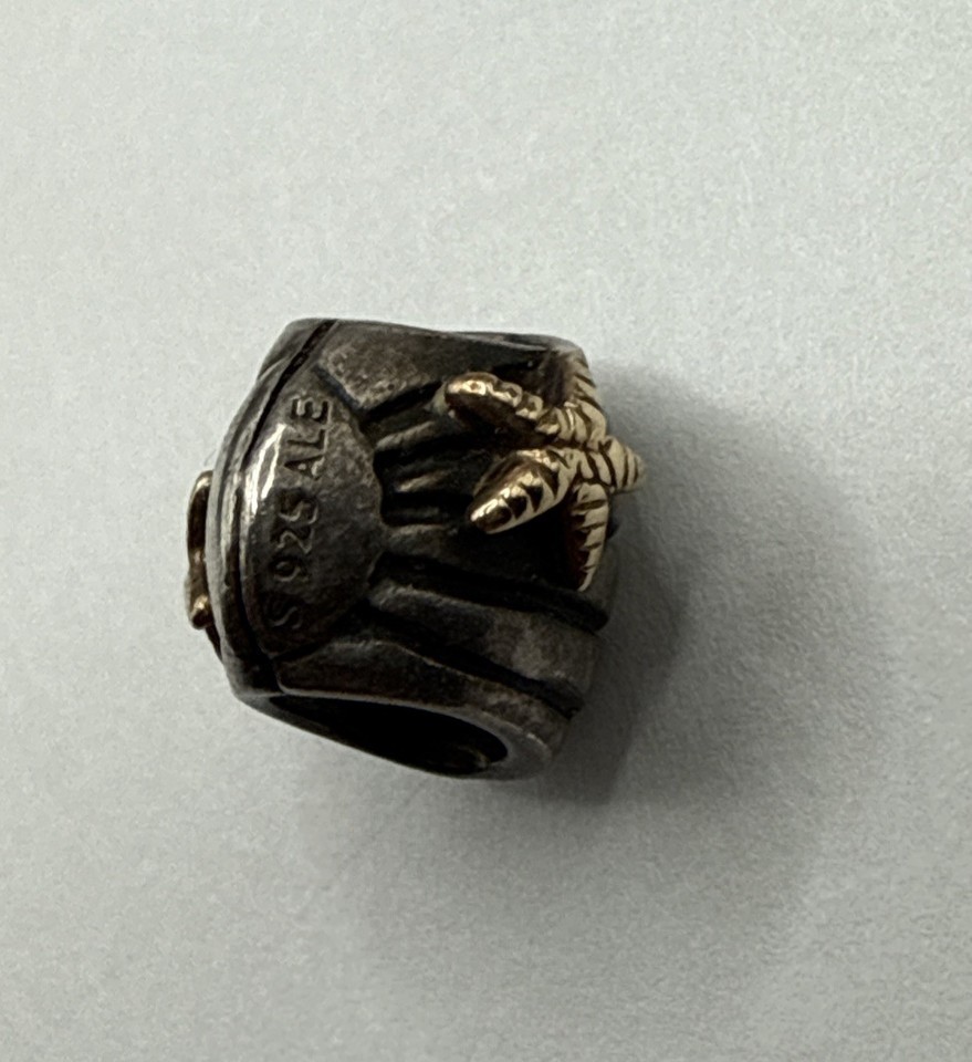 The Pandora Seashell Clam Starfish Charm Bead is a stunning piece made from 14k gold and sterling silver. This charming bead features a unique design inspired by the sea, with a starfish and shell motif that adds a touch of elegance to any bracelet or charm collection. The combination of gold and sterling silver gives it a luxurious feel, making it a perfect addition to any jewelry lover's collection.