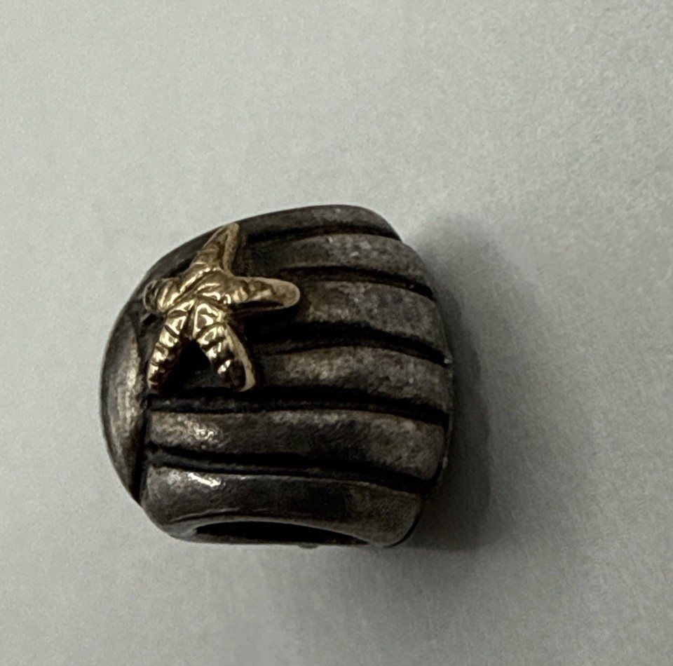 - Pandora Seashell Clam Starfish Charm Bead 14k Gold Sterling Silver ALE 925