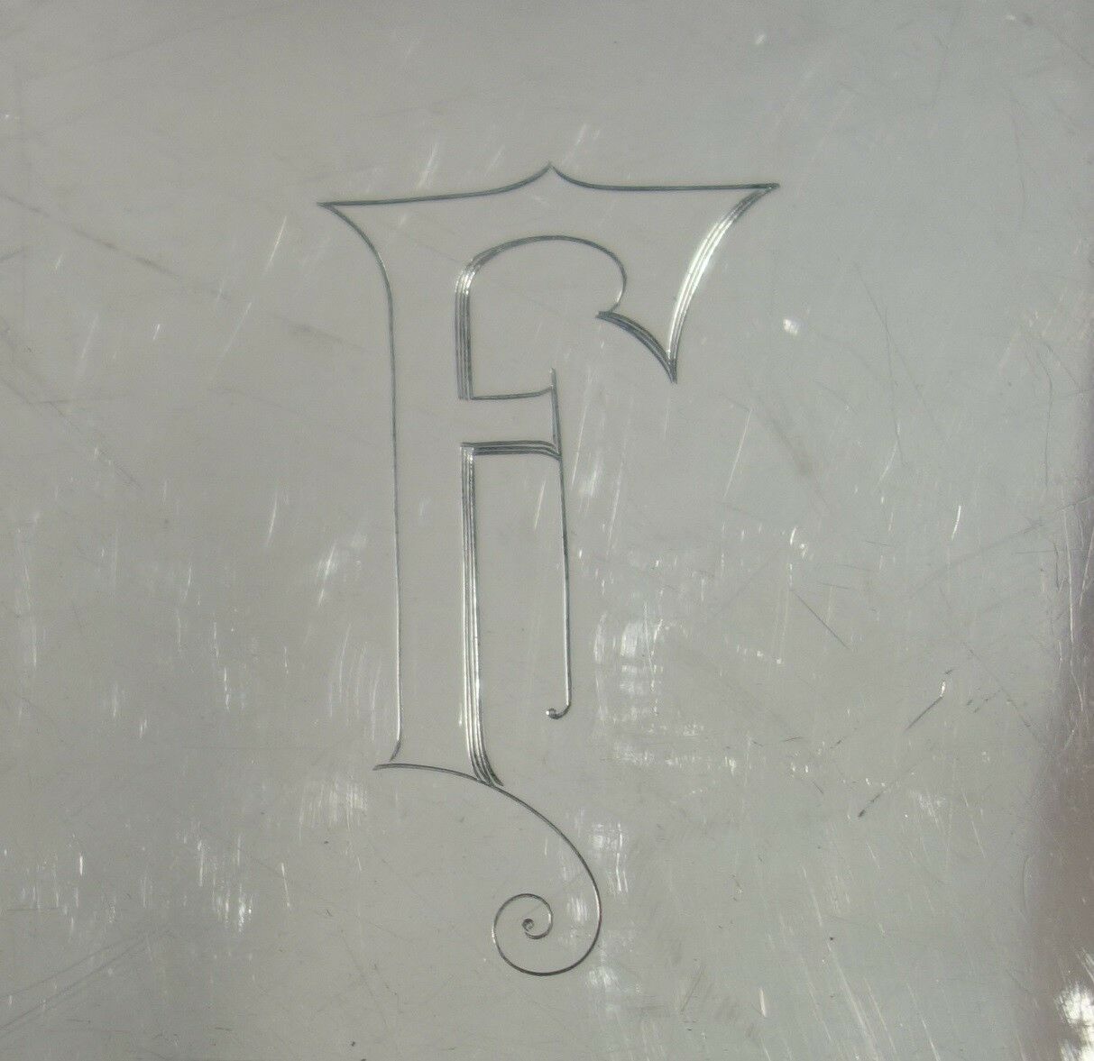 Lastly, the tray that is marked with #5609 weighs 114 ozt., and it measures 28" x 17" x 1". The tray is monogrammed "F" (see photos).