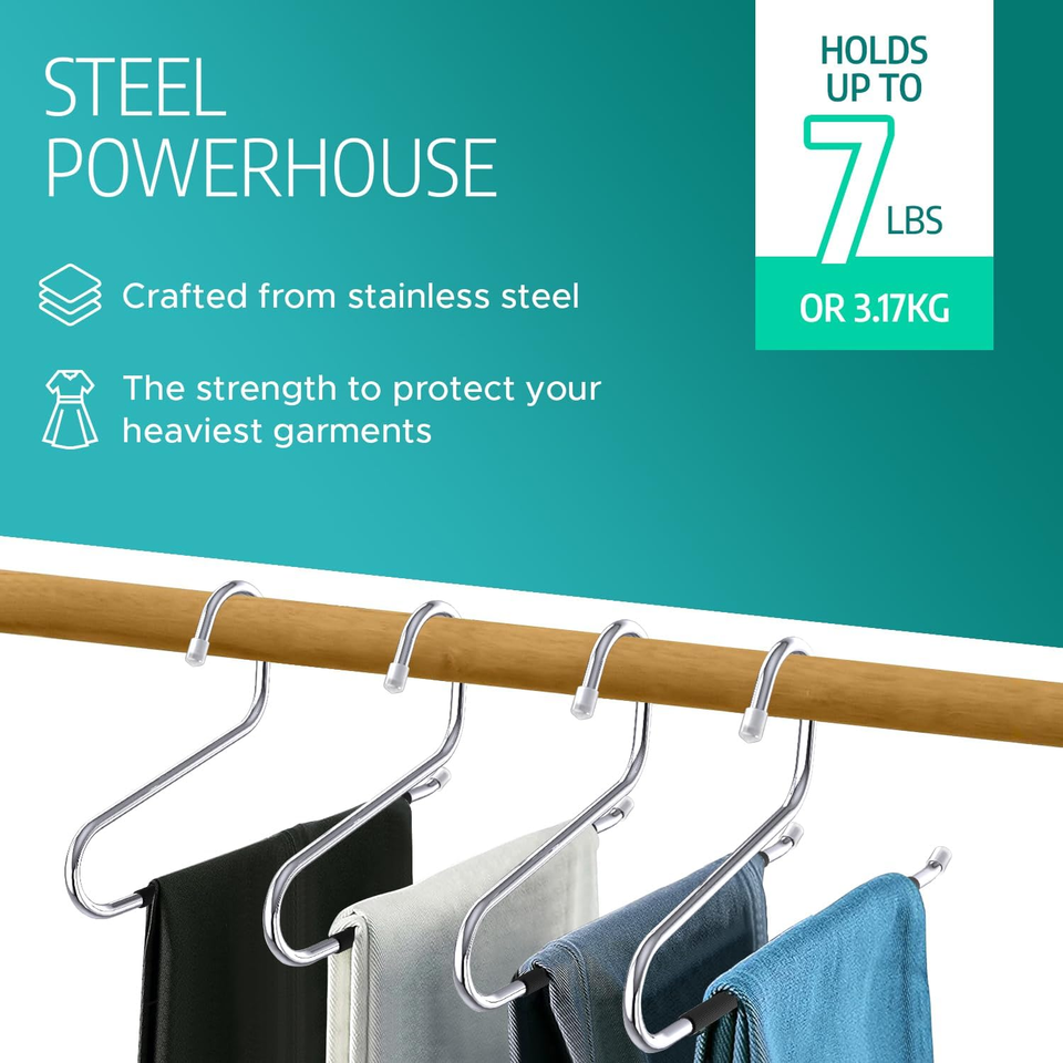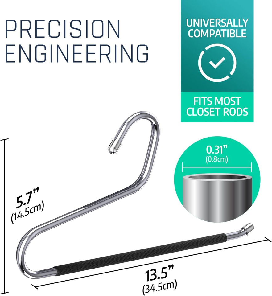 Space-Saving- The slim design will allow you to fit multiple pants hangers for closet. They make perfect men and womens pants hangers as clothes hangers for pants, jeans hanger and hangers for slacks.