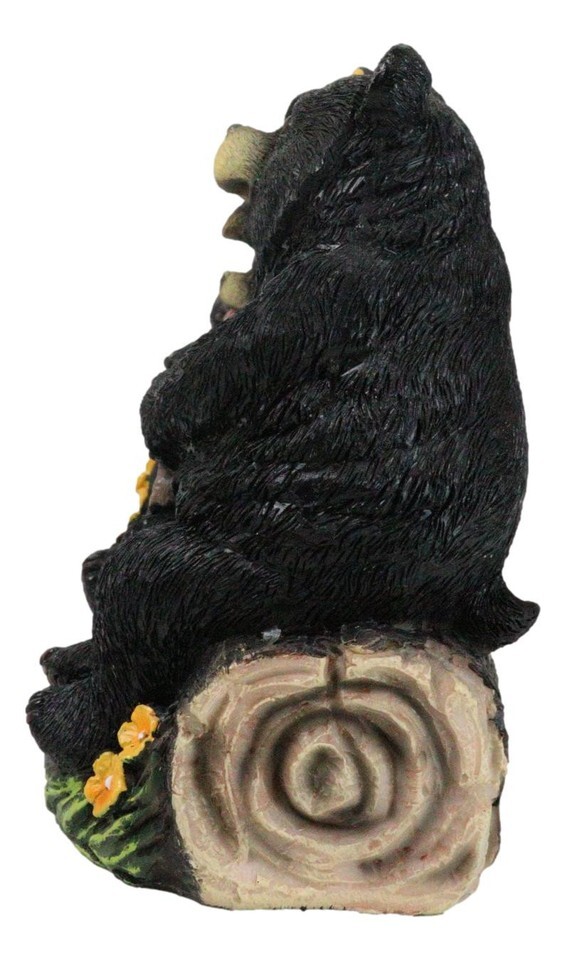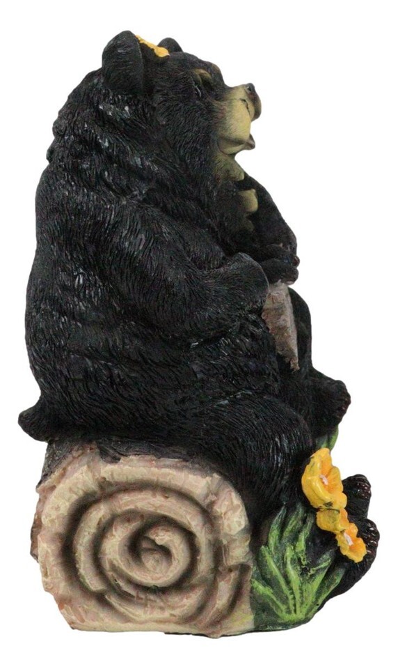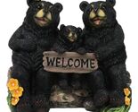 - Papa Mama Black Bears and Cub Sitting On Log with Welcome Plank Sign Figurine