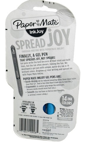 - Paper Mate InkJoy Comfortable Grip 3 0.5mm Fine Point Pens Colors-