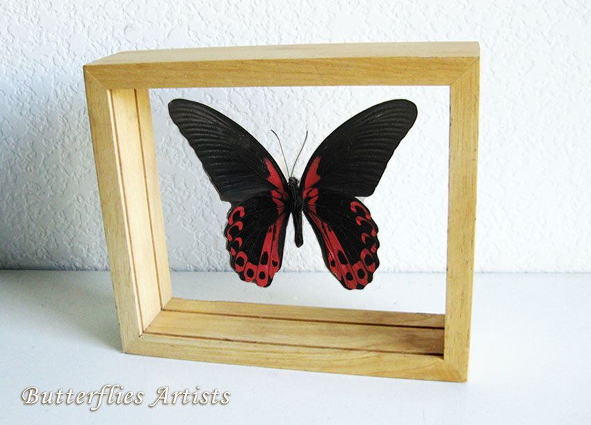 - Papilio Rumanzovia Scarlet Mormon Real Butterfly Framed Double Glass Display