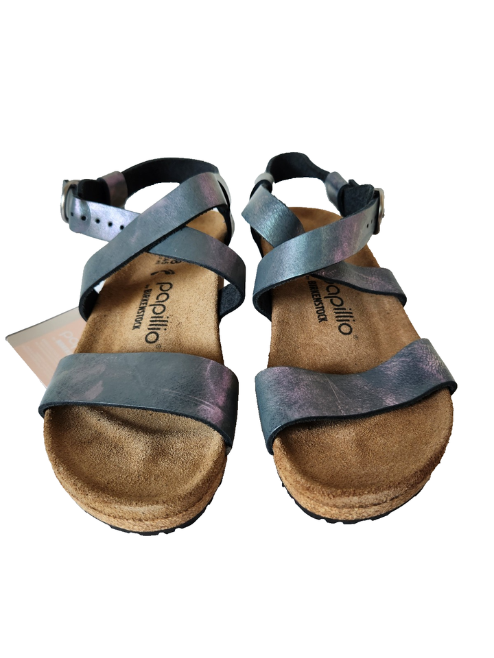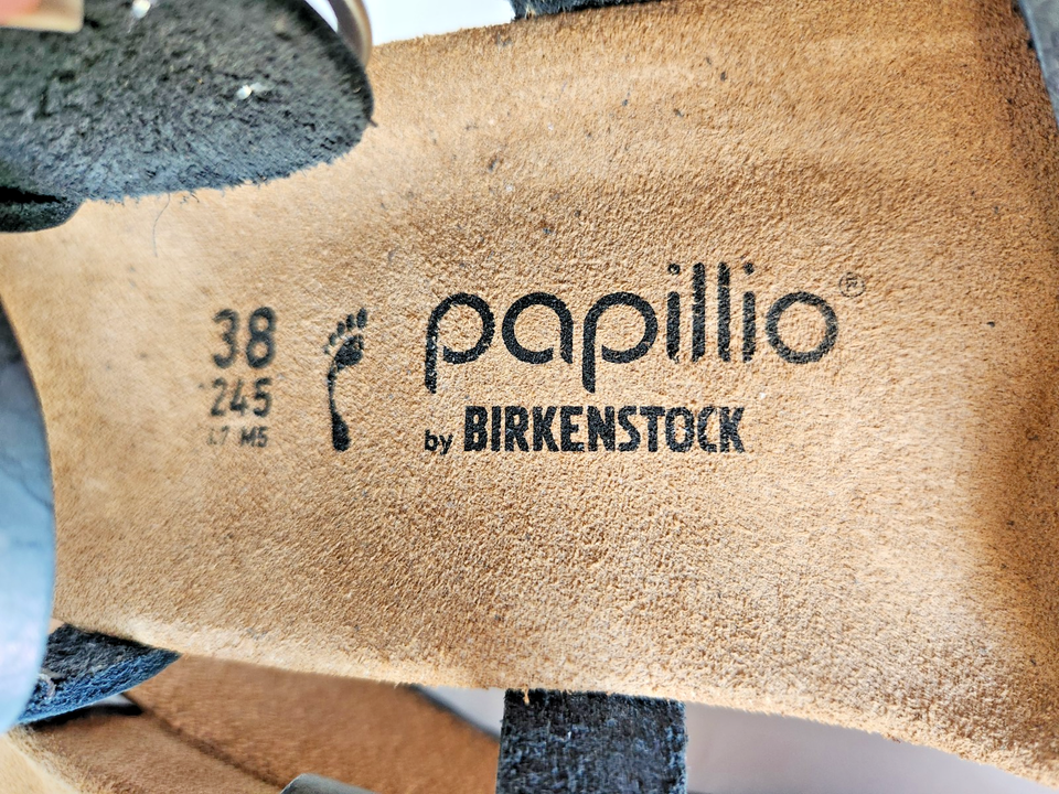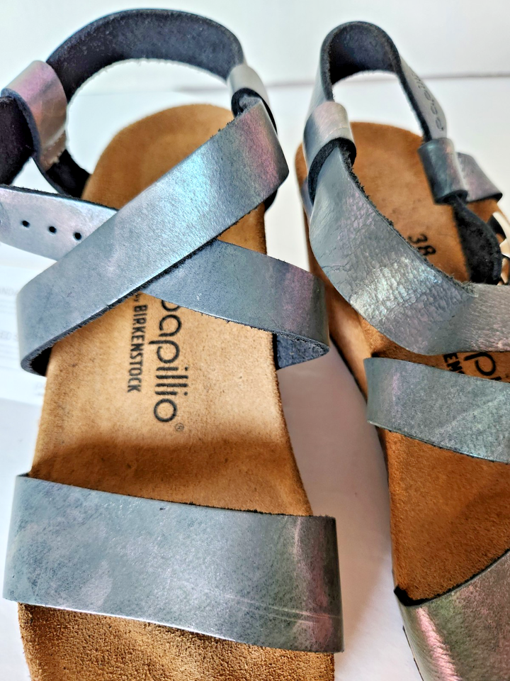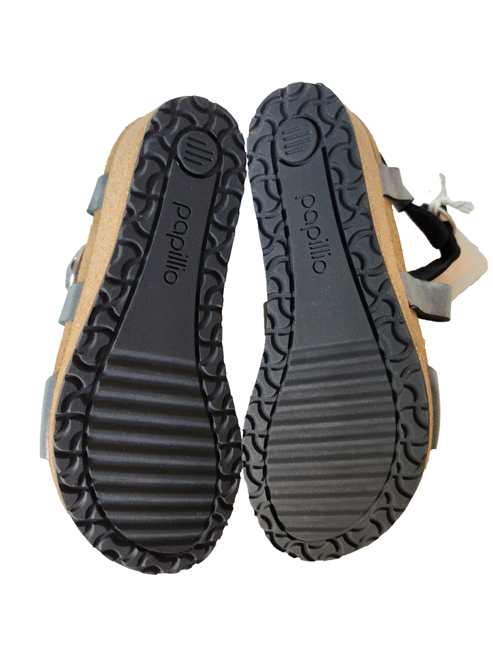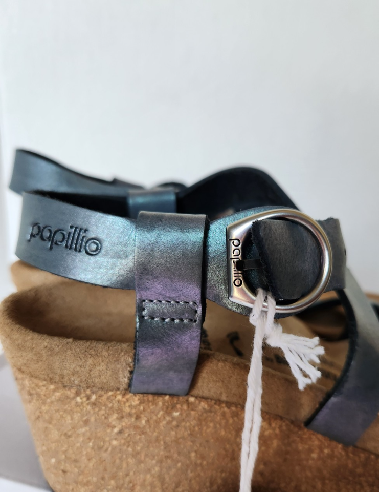 - Papillio Birkenstock Sibyl Nubuck Wedge Sandals 38 US 7.5-8 Metallic Black