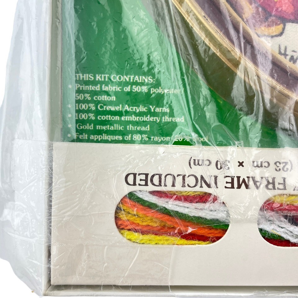 Condition: Listed as pre-owned due package being open at the bottom. Kit has the printed fabric, yarn, frame, instructions, all new. May or may not have the needle.