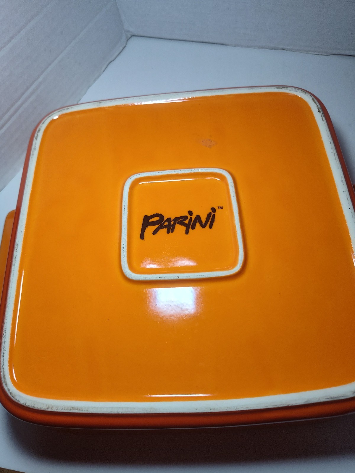 - Parini Orange Square Covered Baker Non Stick 9.5 x 9.5 x 2.5 Inches