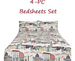 Paris Bed Sheets Set 4-pc Multicolor Parisian Scenes Full Queen King