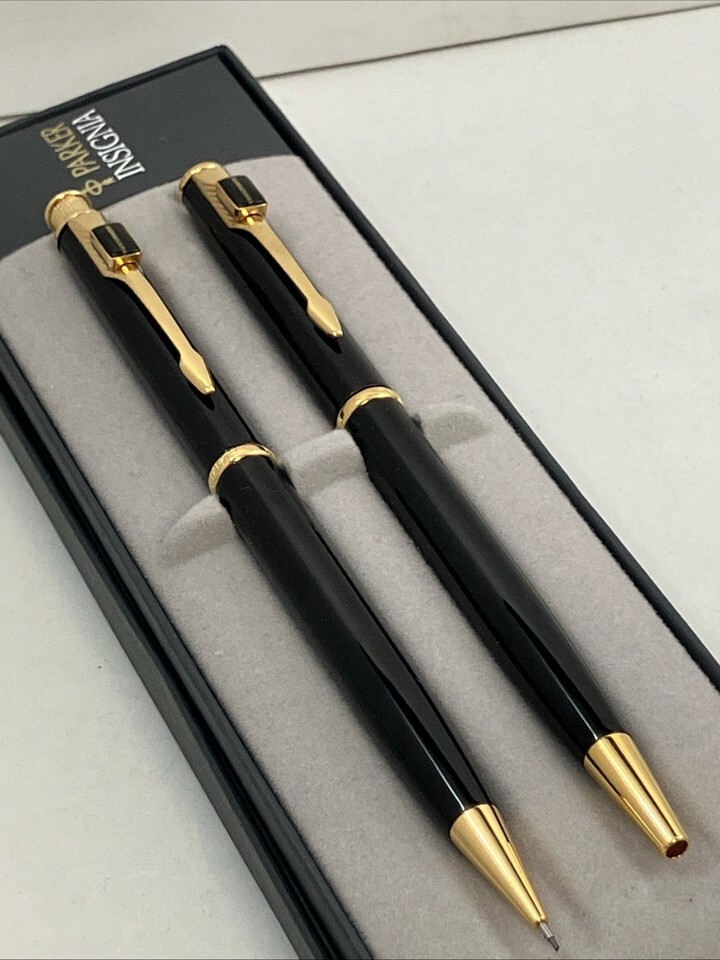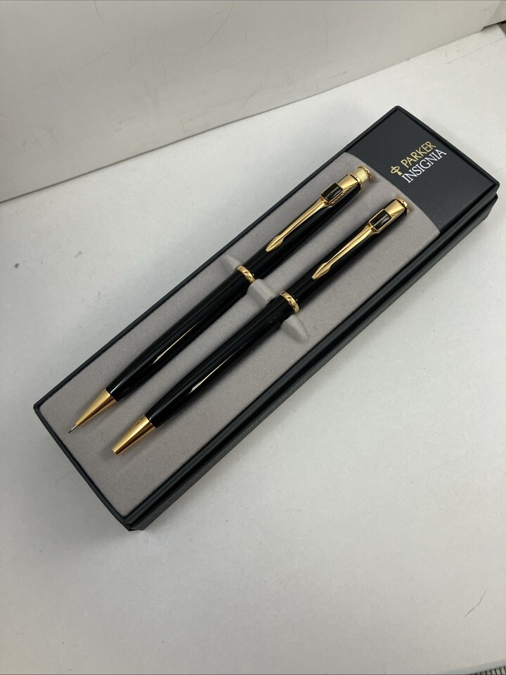- Parker Insignia Black Lacquer Ballpoint Pen & Mech. Pencil Set HUSSMANN Branded