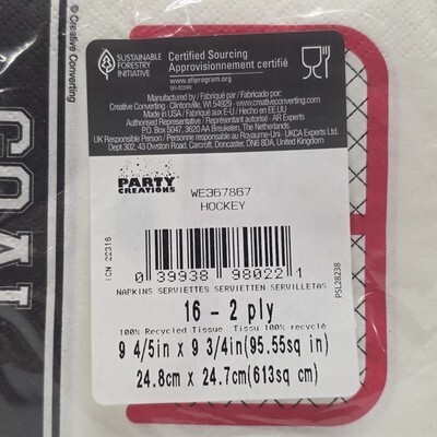 - Party Creations Hockey Sports Paper Napkins Score Goal - 32 Napkins Total