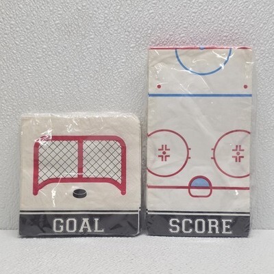 Party Creations Hockey Sports Paper Napkins Score Goal - 32 Napkins Total. Images show actual set that will ship.