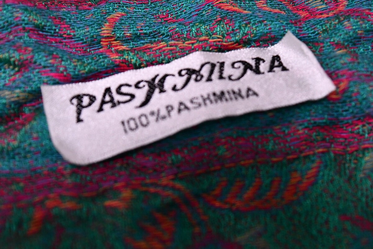 - Pashmina Scarf Cashmere Paisley Teal/fuscia Teal Fringe