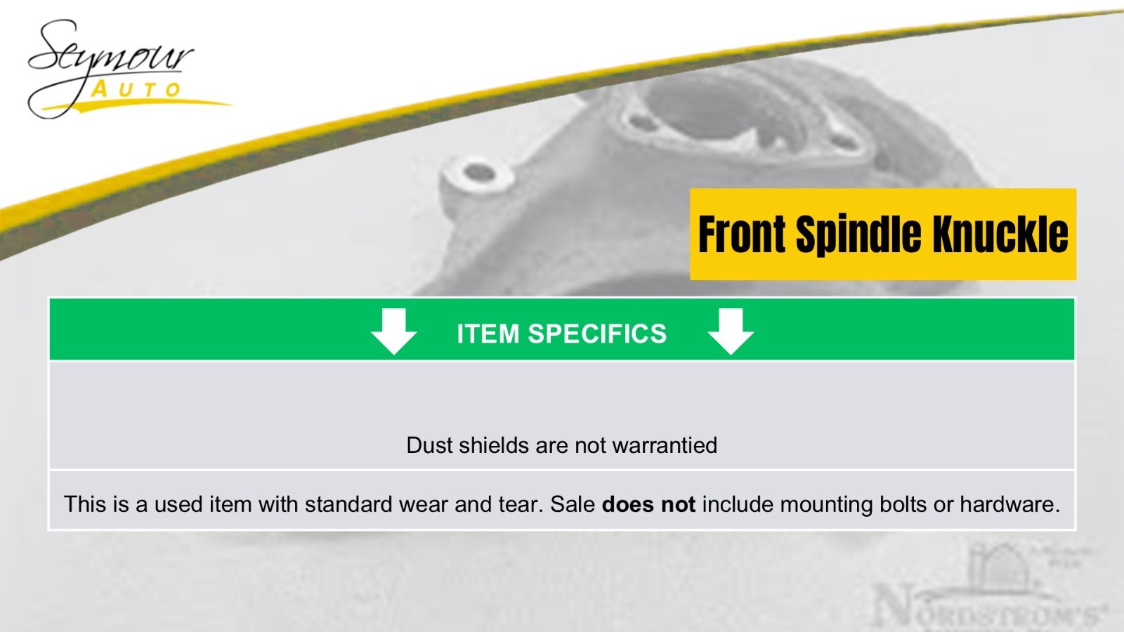 Seymour Auto Wrecking ships to US addresses within the 48 states only via UPS ground.