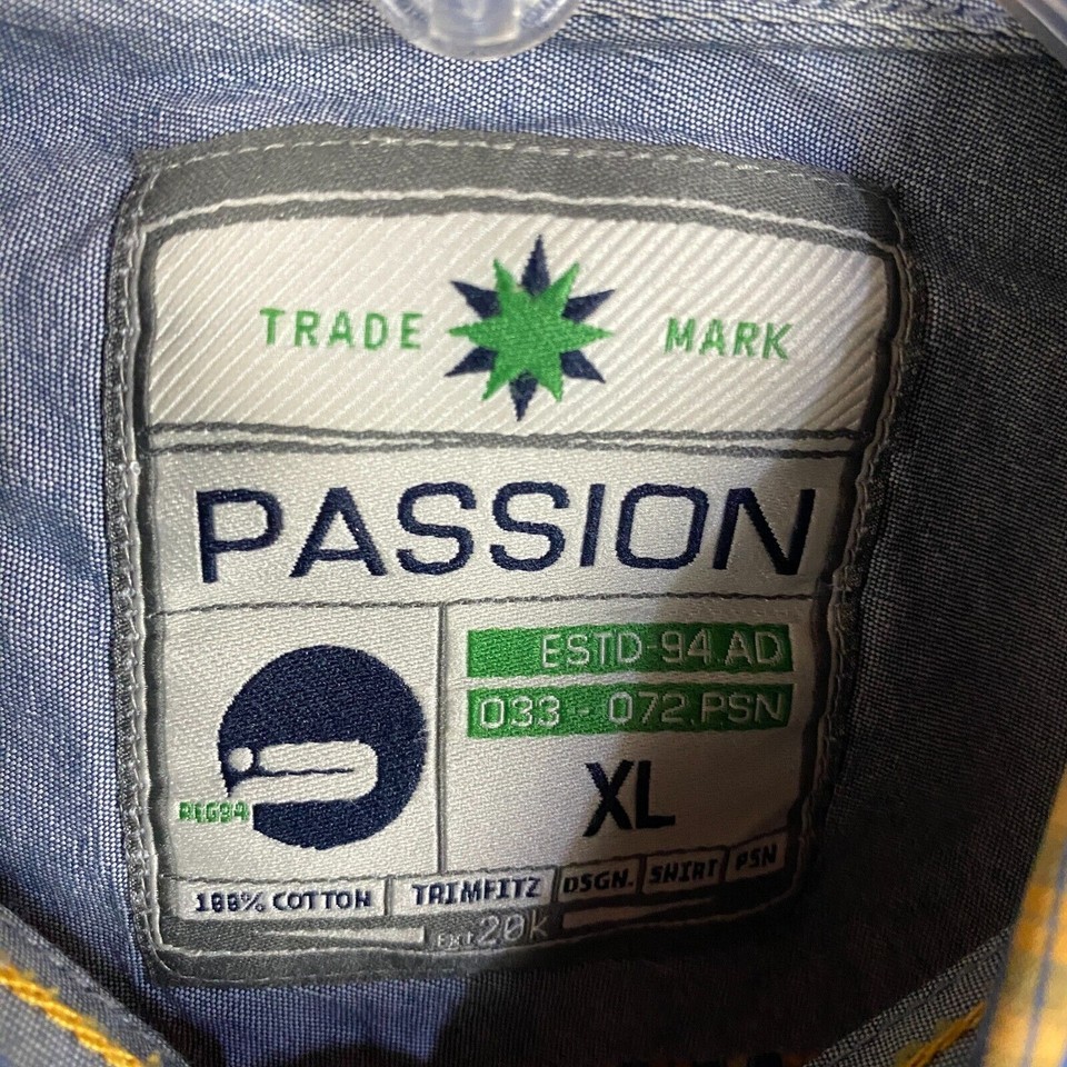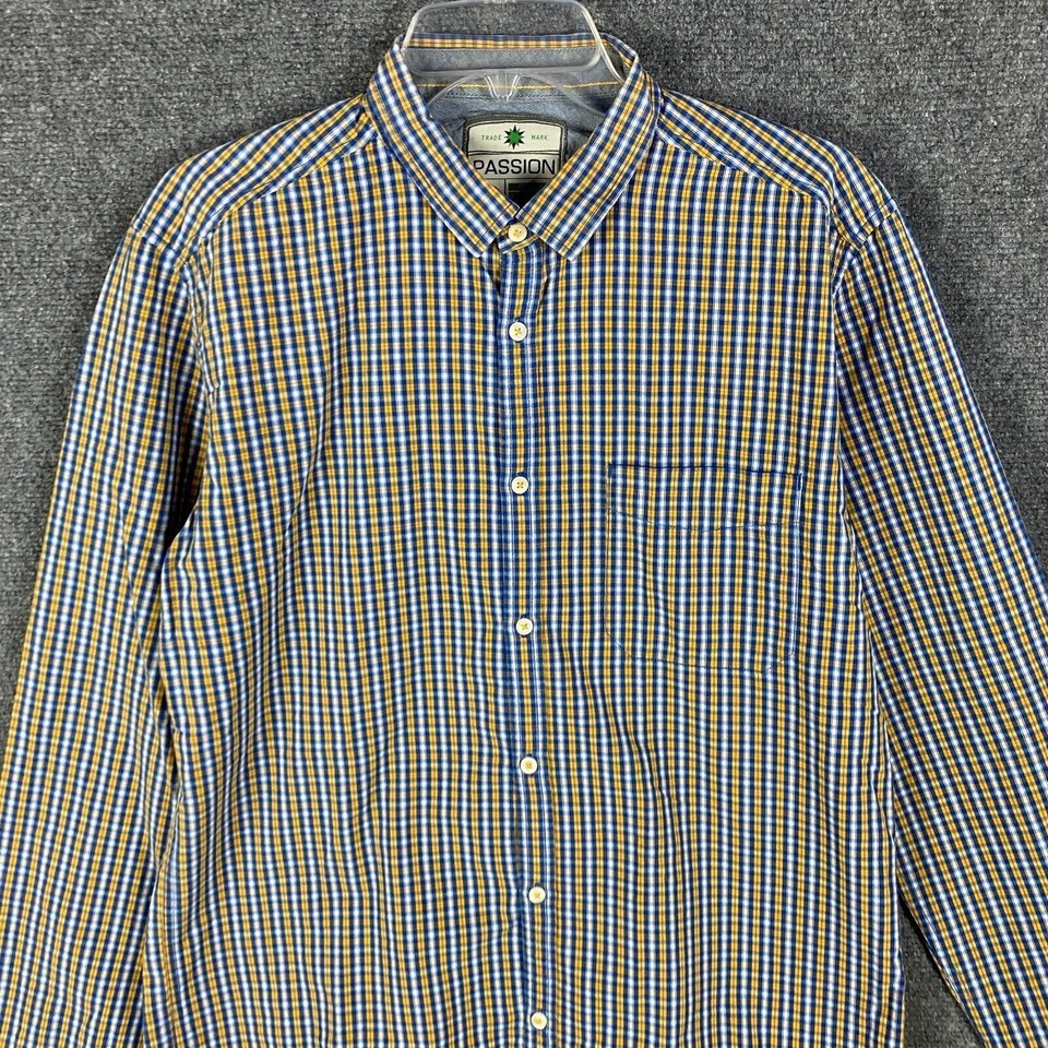 - Passion Button Up Shirt Men's XL Long Sleeve Plaid 100% Cotton Multicolor