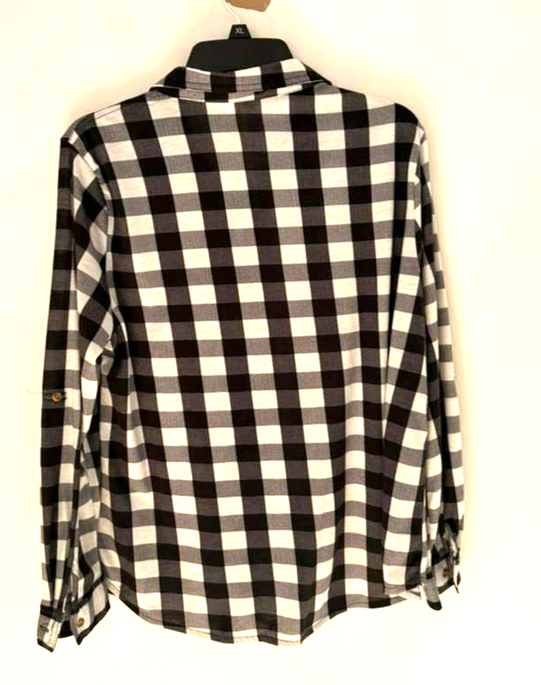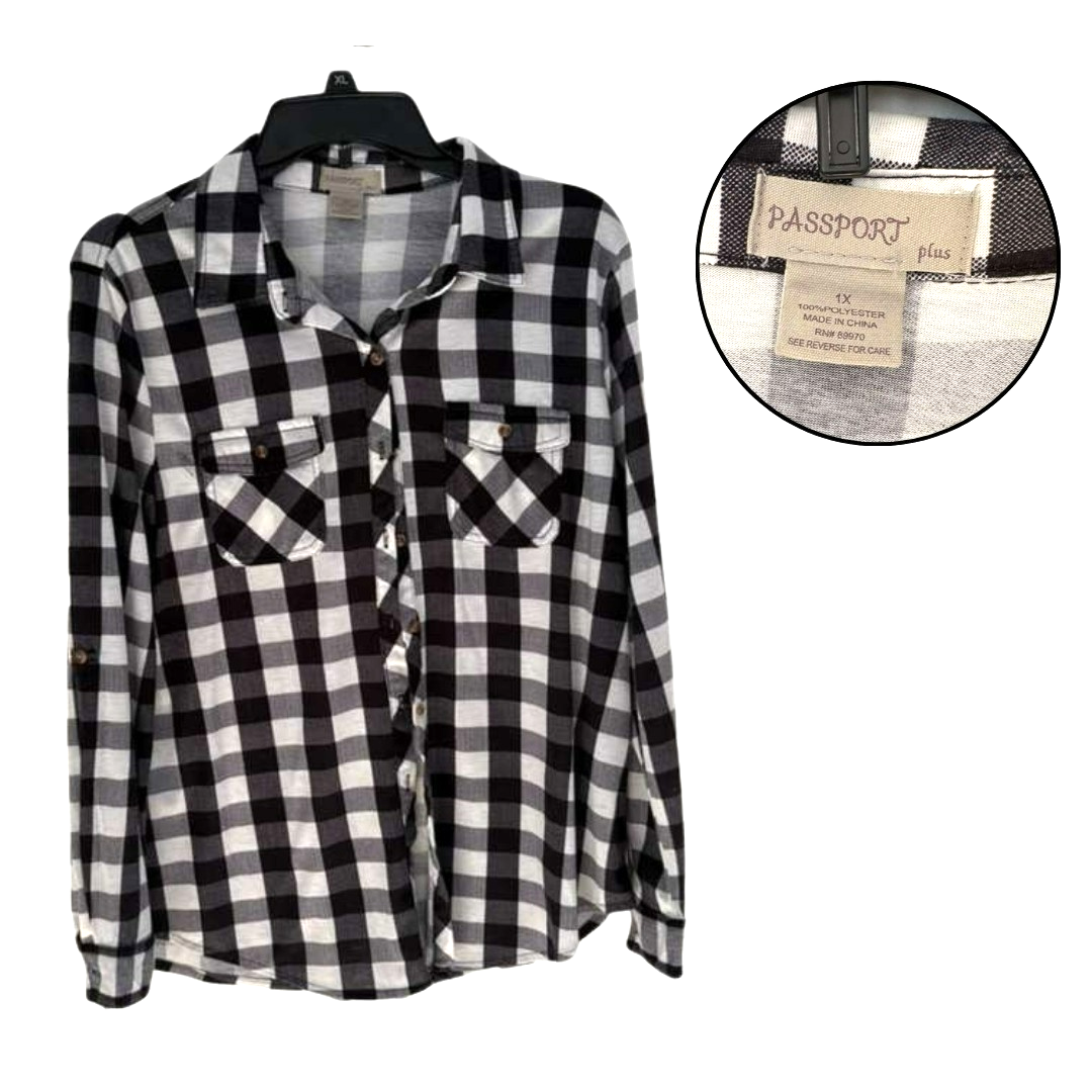 - Passport Plus Women’s 1X Black White Checkered Button Down Long Sleeve Shirt