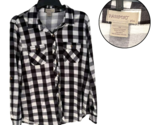 Passport Plus Women’s 1X Black White Checkered Button Down Long Sleeve Shirt
