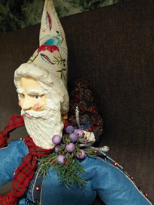 - Pat Miller Norweigen Poseable Santa Claus Wooden Face Hands Feet Gallerie II
