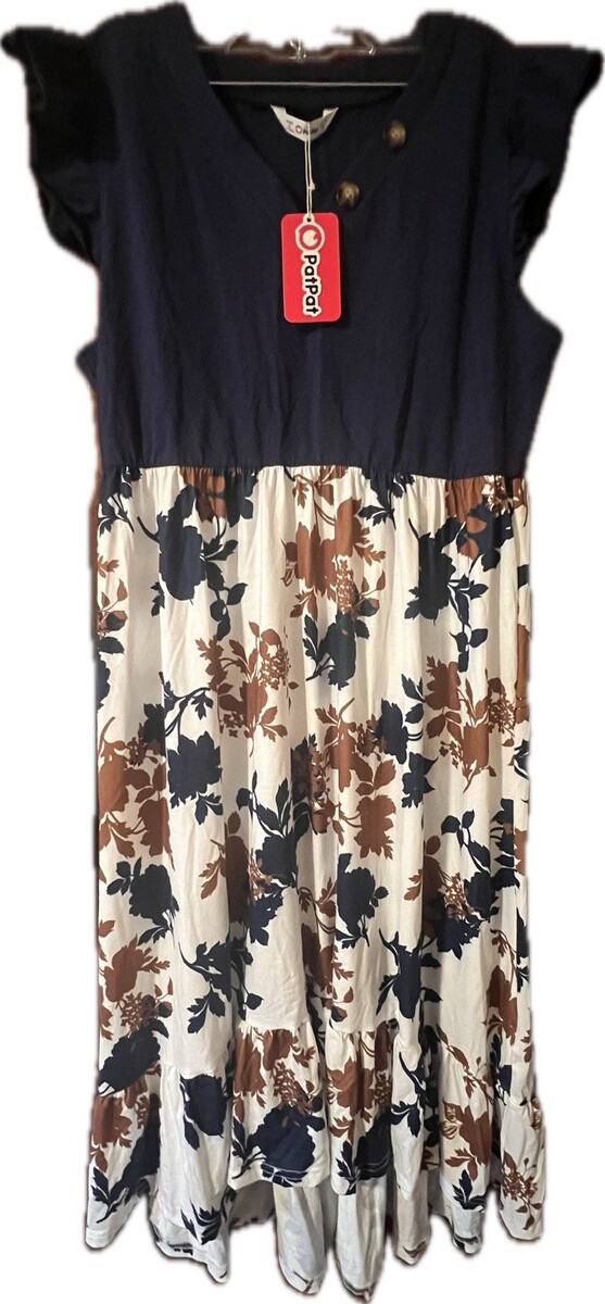 PatPat Dress With A Navy Blue Top And A White And Floral Print Skirt Women’s XL