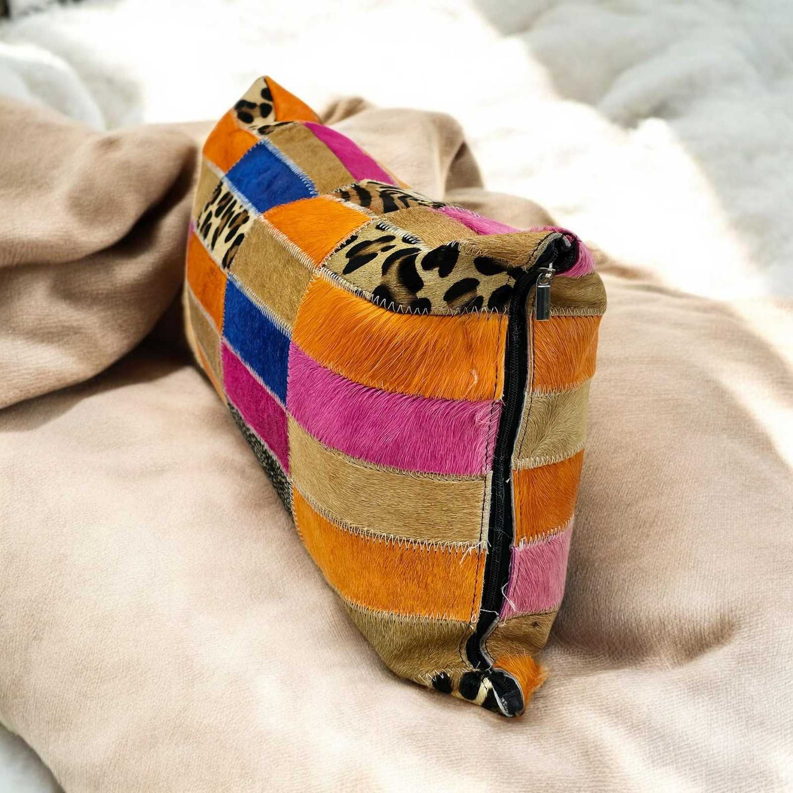 Transform any room with this luxurious 20"x11" goat leather patchwork pillow cover, handcrafted from genuine hair-on goat leather. Featuring a statement mix of animal-print patches—cheetah, leopard, and polka dot—this cushion cover brings texture, sophistication, and unique charm to boho, Western, or rustic interiors.