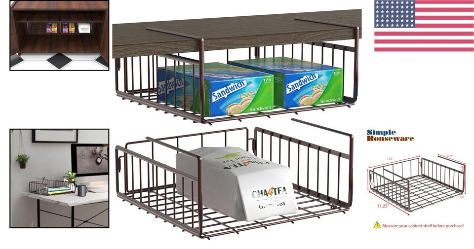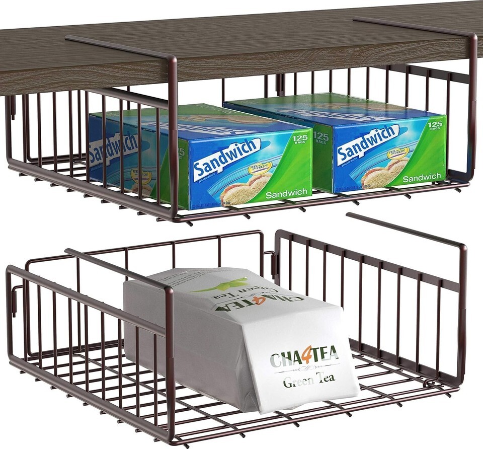 - Patented Space-Saving Under Shelf Baskets - Metal Design - Bronze Finish