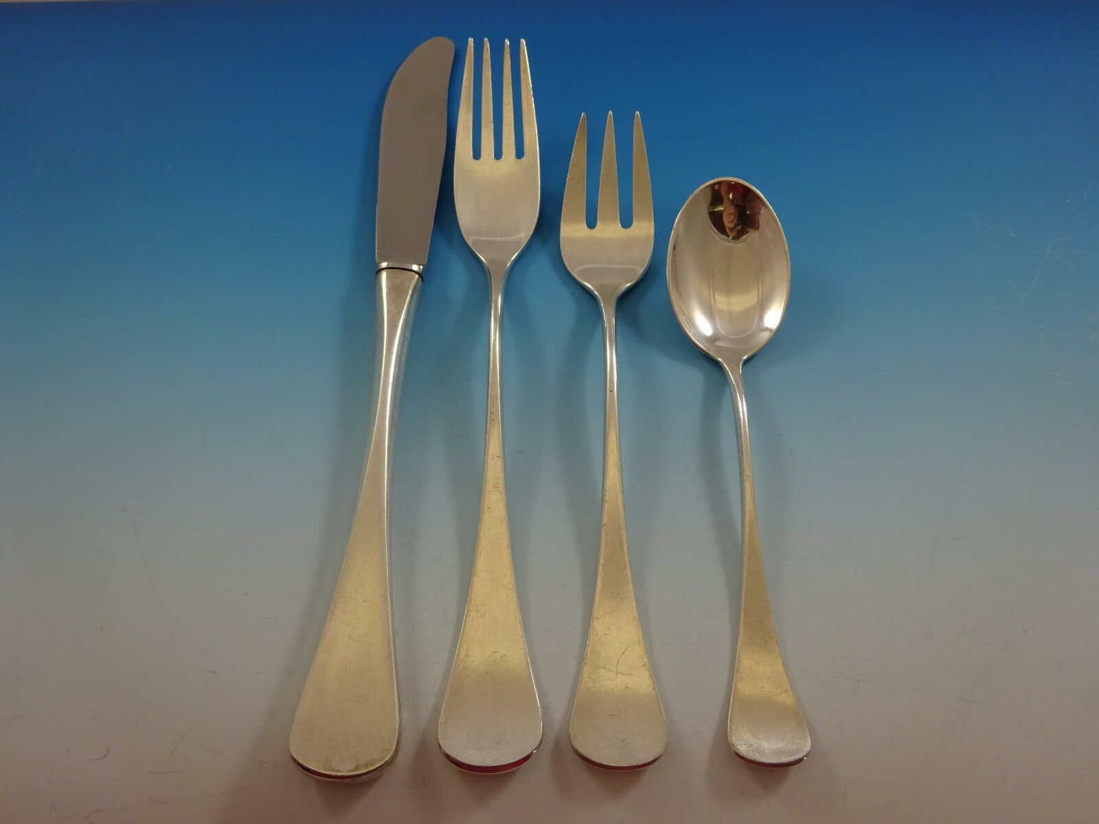 Excellent condition, not monogrammed. This set will be beautifully professionally polished and sealed in plastic sleeves prior to shipping. Superb unadorned modern design!