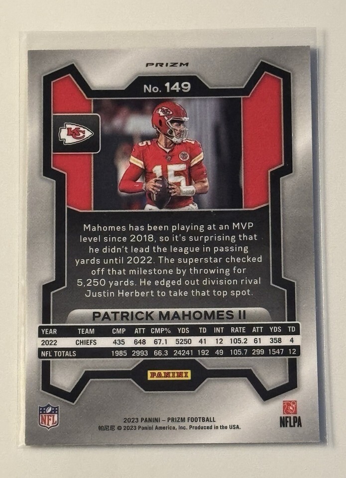 Patrick Mahomes II* 2023 Panini Silver Prizm Refractor NFL KC Chiefs - Card #149